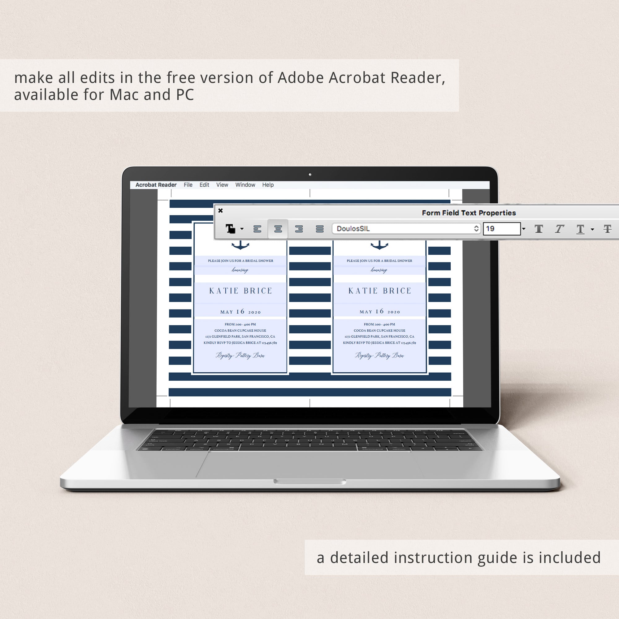 This nautical bridal shower bundle is an instant download. After purchase you will receive a download link immediately on screen. Also within minutes of your order and payment, an e-mail will be sent to you with a link for your download.