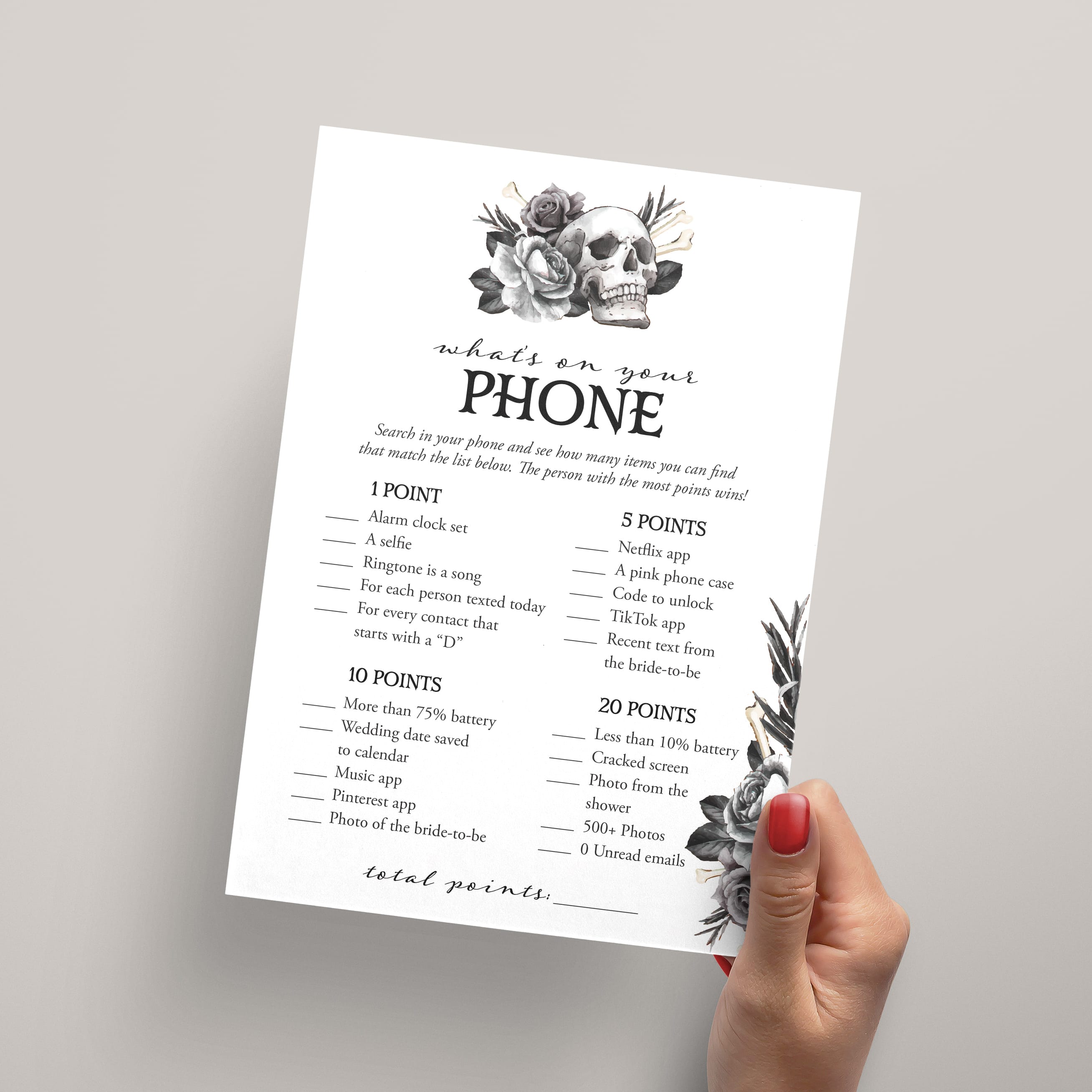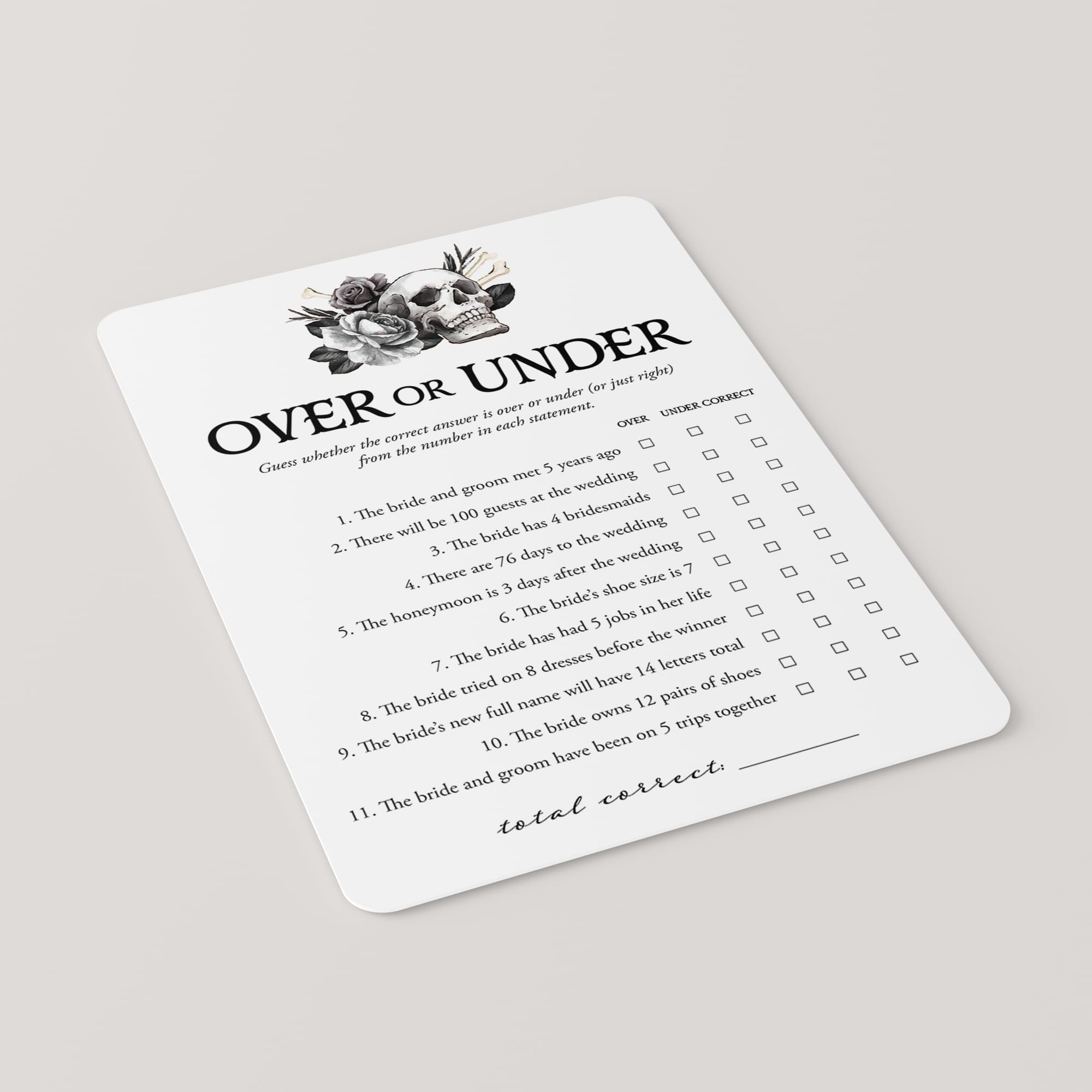 Whether you're planning a Halloween bridal shower or want to steer away from the traditional pink palette, this Till Death Do Us Party bridal shower games bundle is a match made in heaven. With black florals and skulls as the centerpiece, you can infuse your shower with an edgy and gothic ambiance. And the best part? You can easily repurpose your Halloween decorations to create a hauntingly beautiful setting.