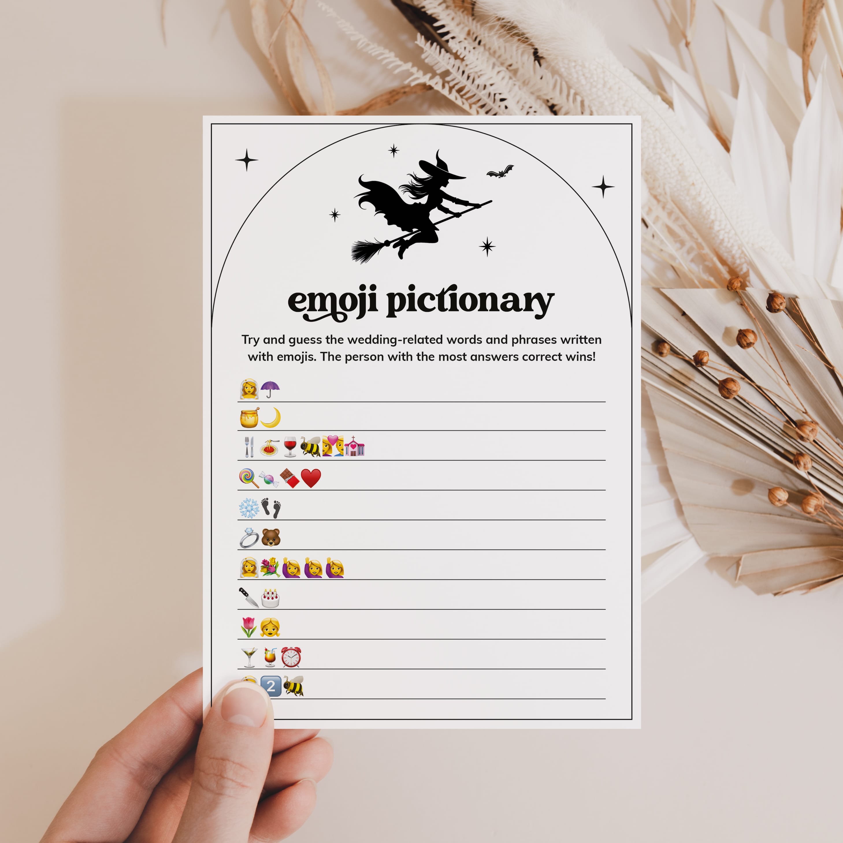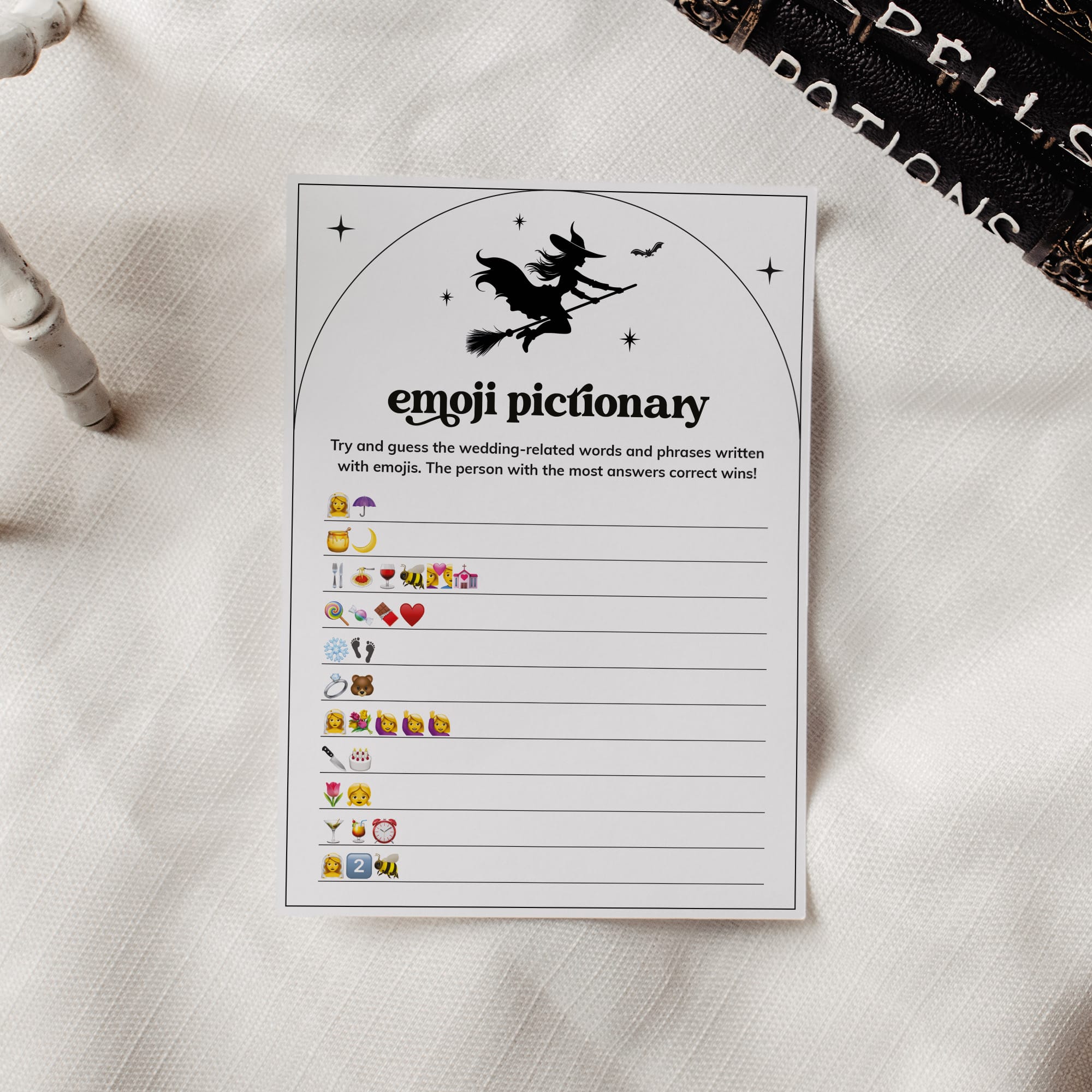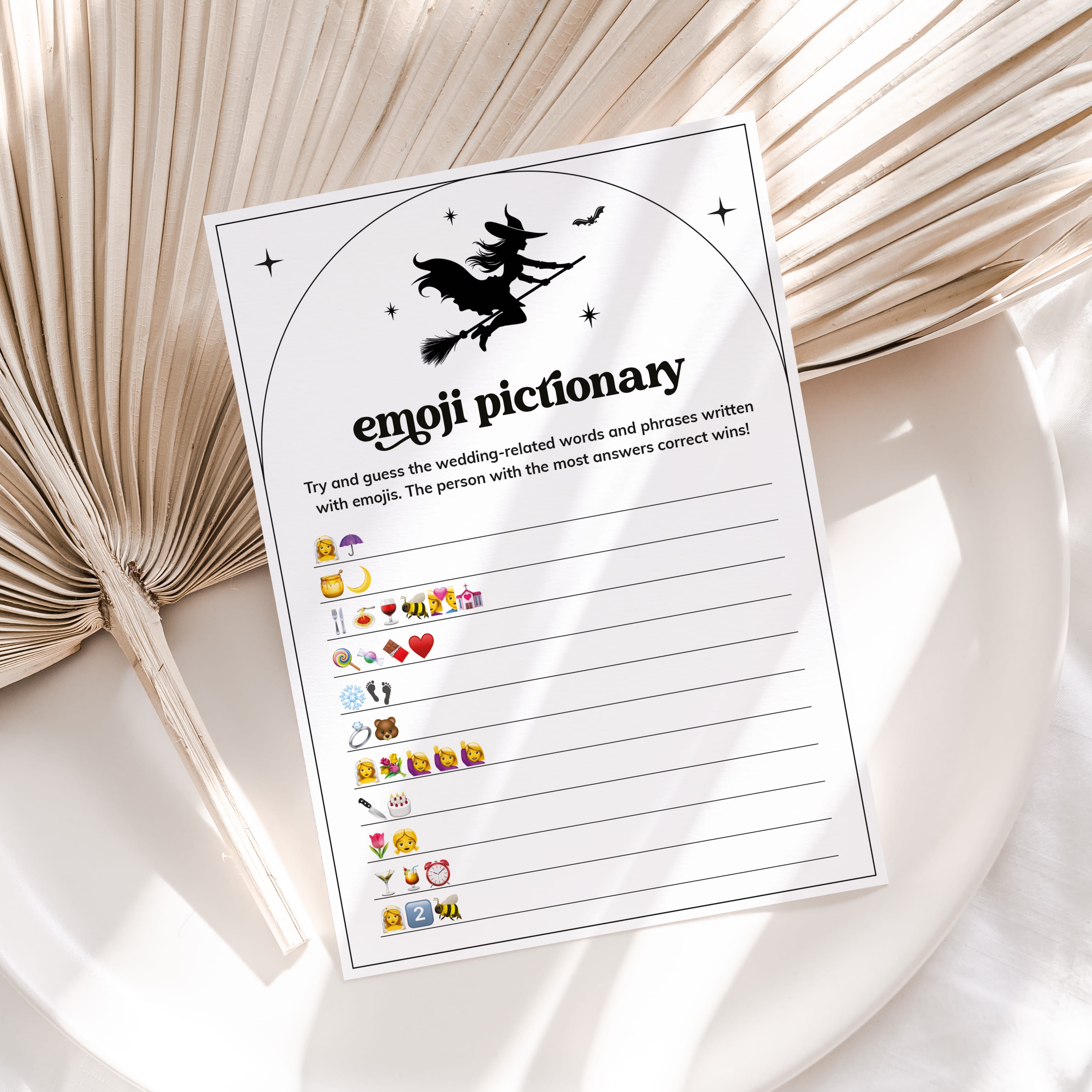 Are you looking for a unique game to play at your "This Witch Is Getting Hitched" bridal shower? Play this Emoji Pictionary game. This game is the perfect addition to your witch theme bridal shower and it's sure to be a hit at your party!