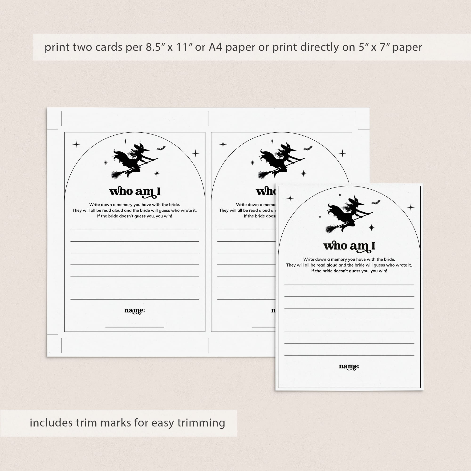 Witches Bridal Shower Who Am I Icebreaker Game Printable by LittleSizzle