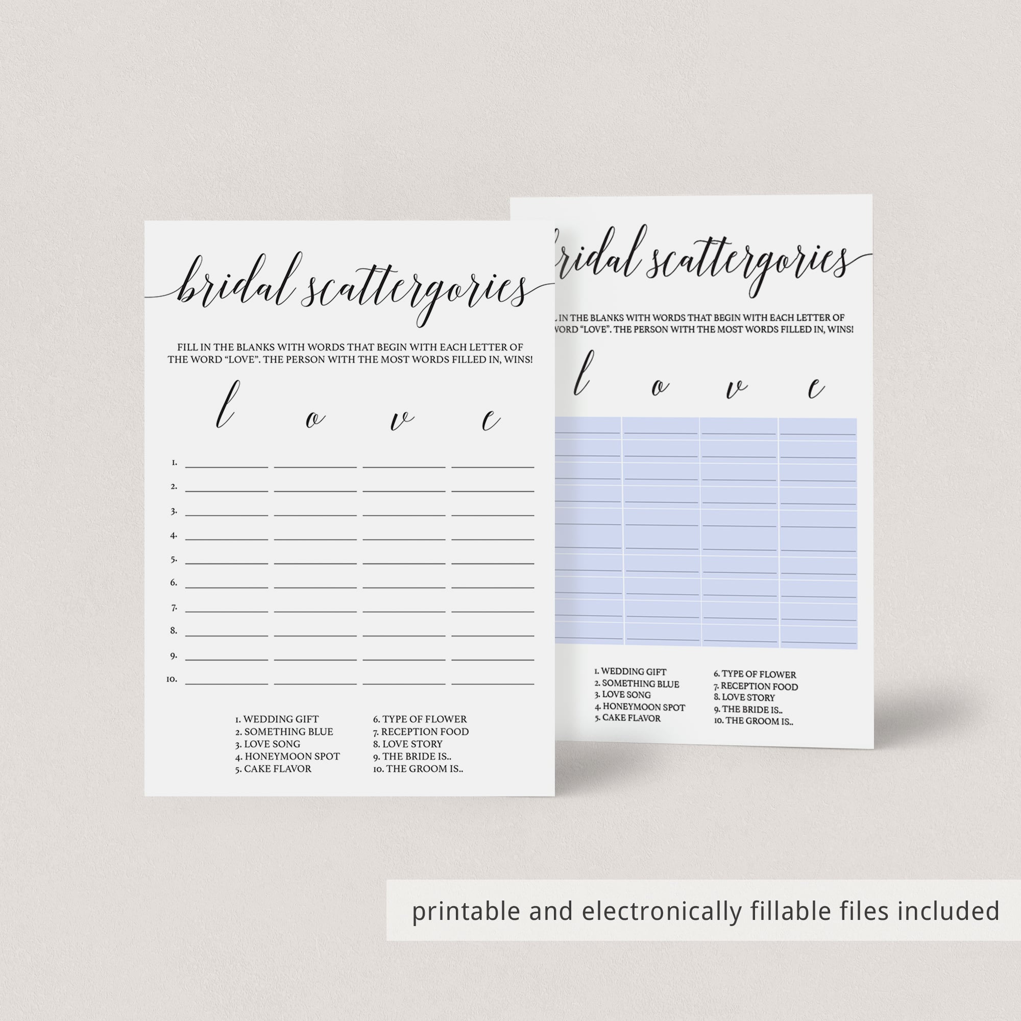 Are you hosting a virtual bridal shower? Keep everyone involved with these 4 virtual Bridal Shower Games with calligraphy font. The minimalist game bundle includes the best games for your virtual bridal shower. Printable and electronically fillable PDF templates are included.