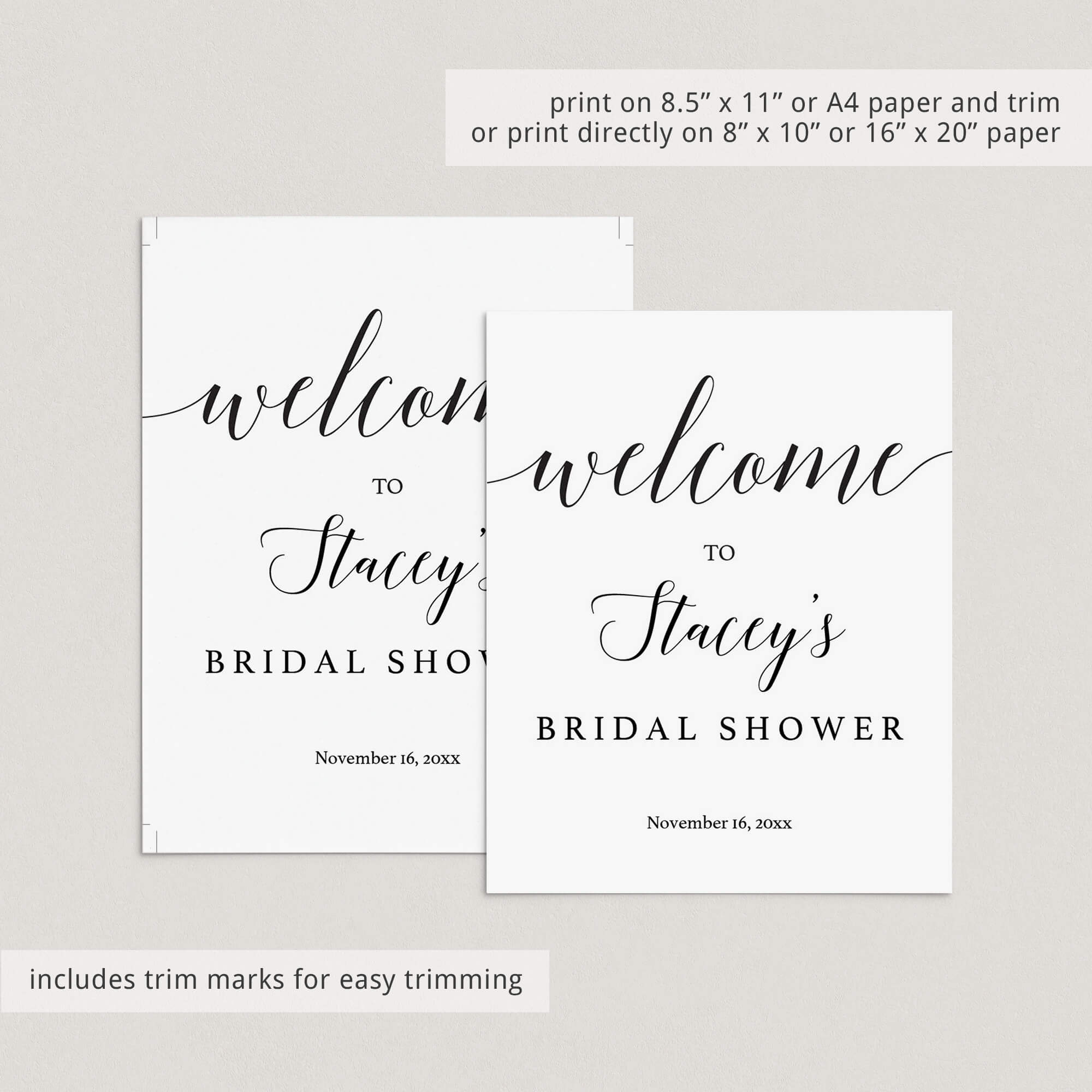 Easily personalize the welcome sign with the name of the bride-to-be and the date of the bridal shower. A detailed instruction guide with tips & tricks on editing, trimming, paper choices and more is included.