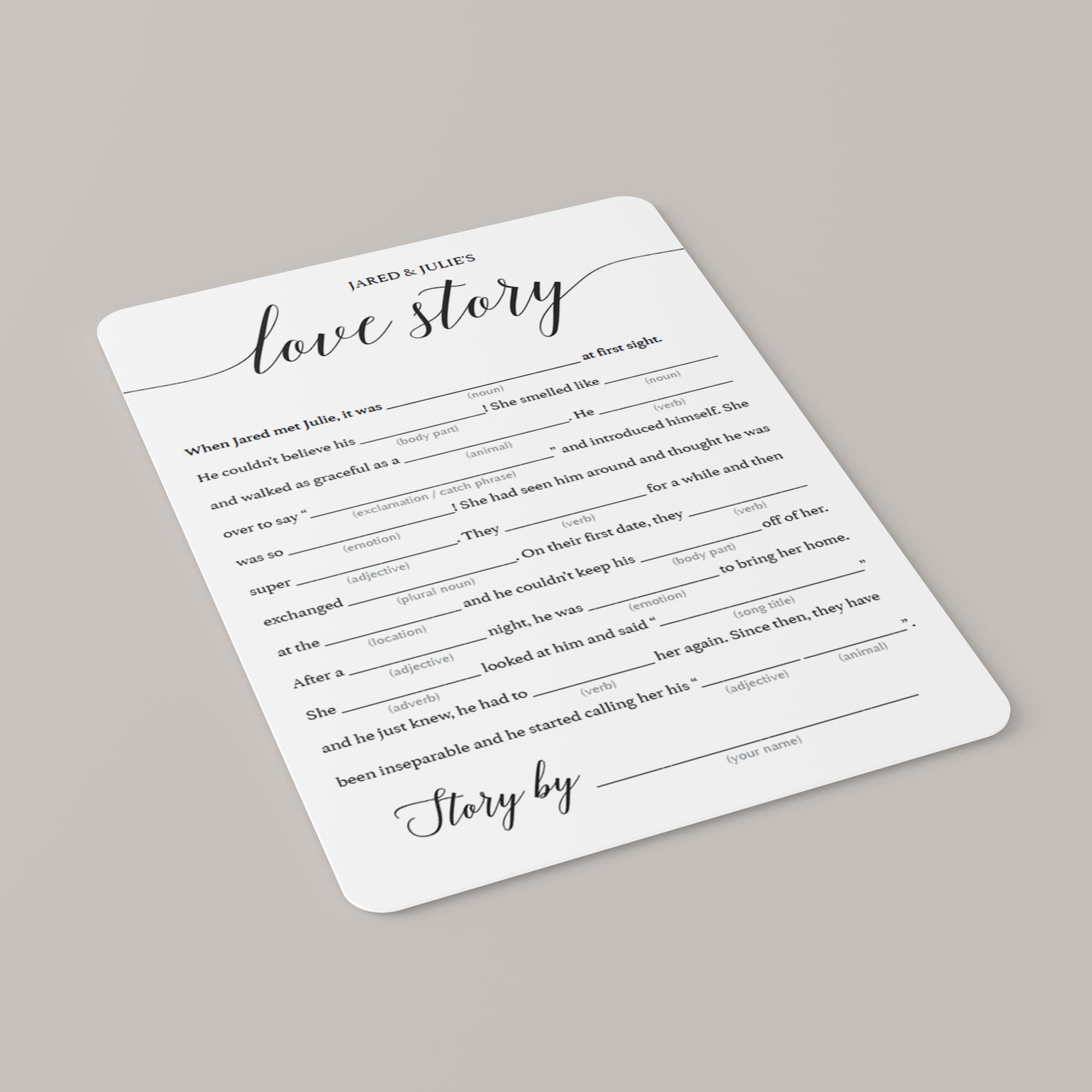 For the games Bride or Groom and Love Story Mad Libs, each: