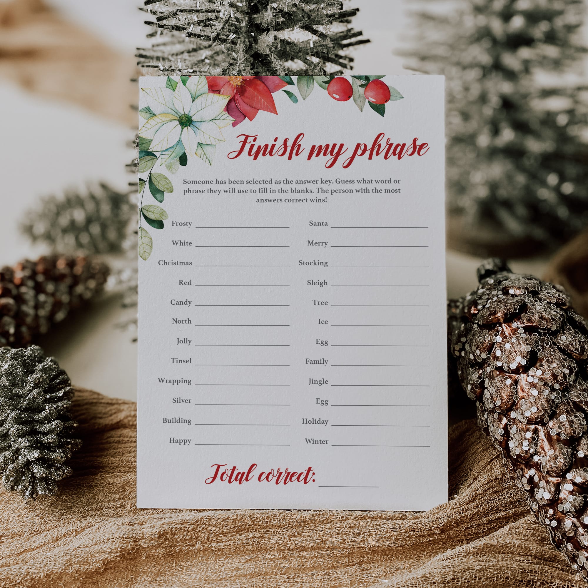 This floral Christmas party game is an instant download, so simply download and print the cards as many times as you need. Print at the comfort of your home or order the games from a local or online print shop.