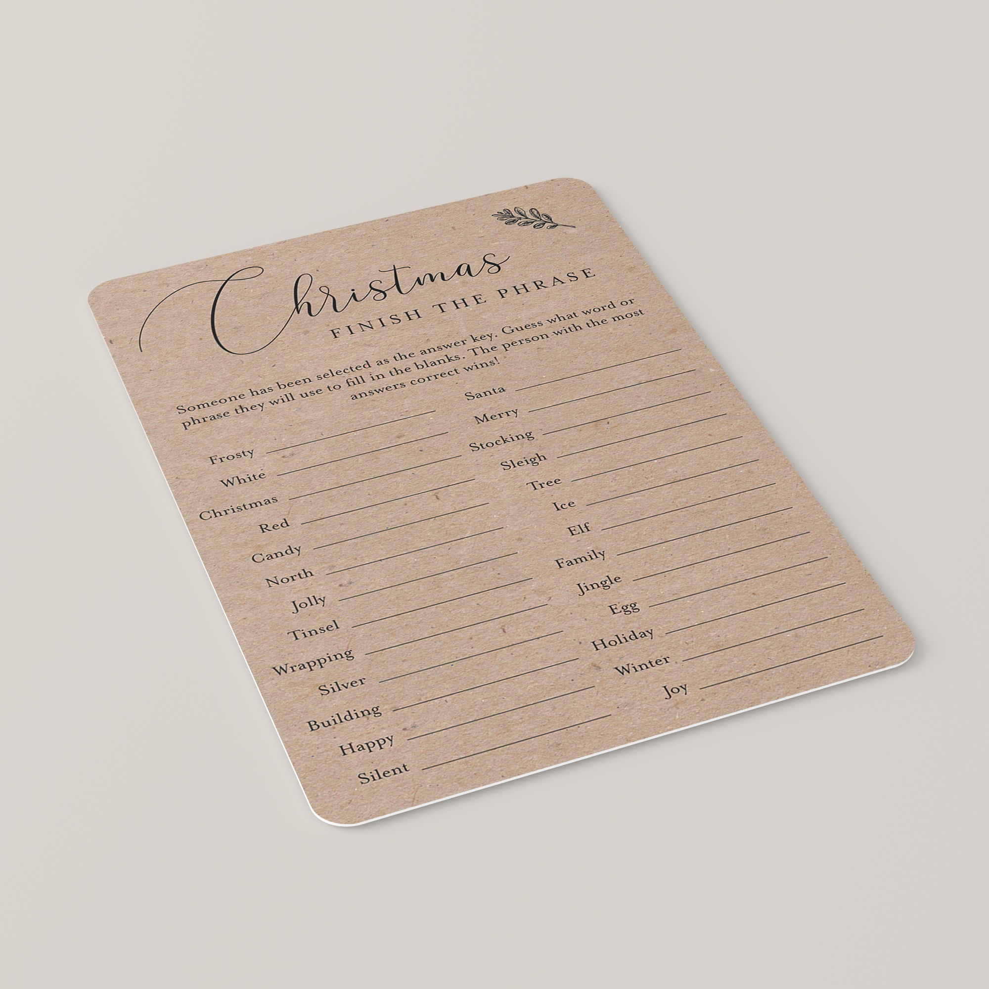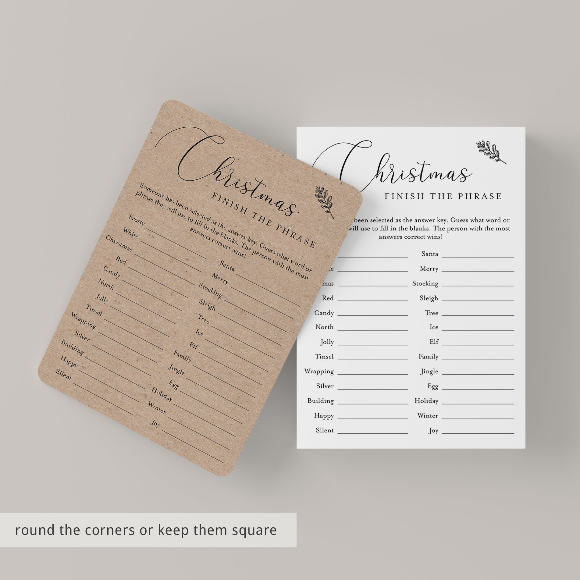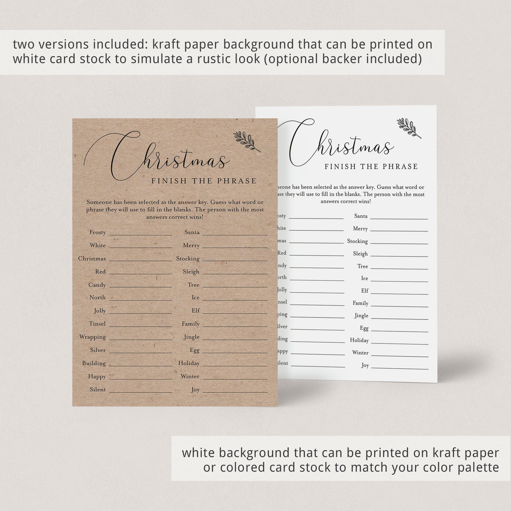 Christmas Finish The Phrase with faux kraft background and white background, each: