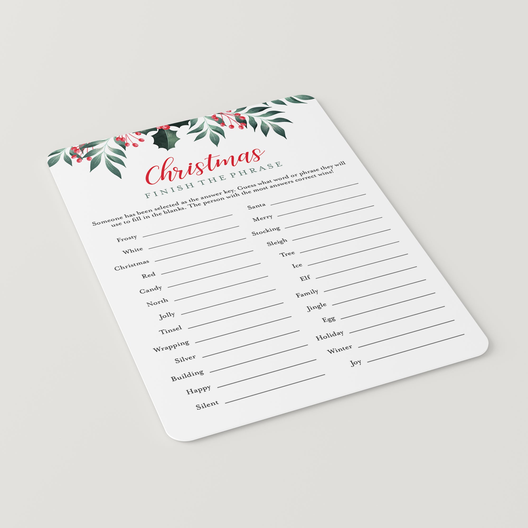 Finish The Phrase is a great game for a Holiday party with a group of friends or family. It is a fun activity for family get-togethers, company Christmas parties or for classrooms and very easy to play.