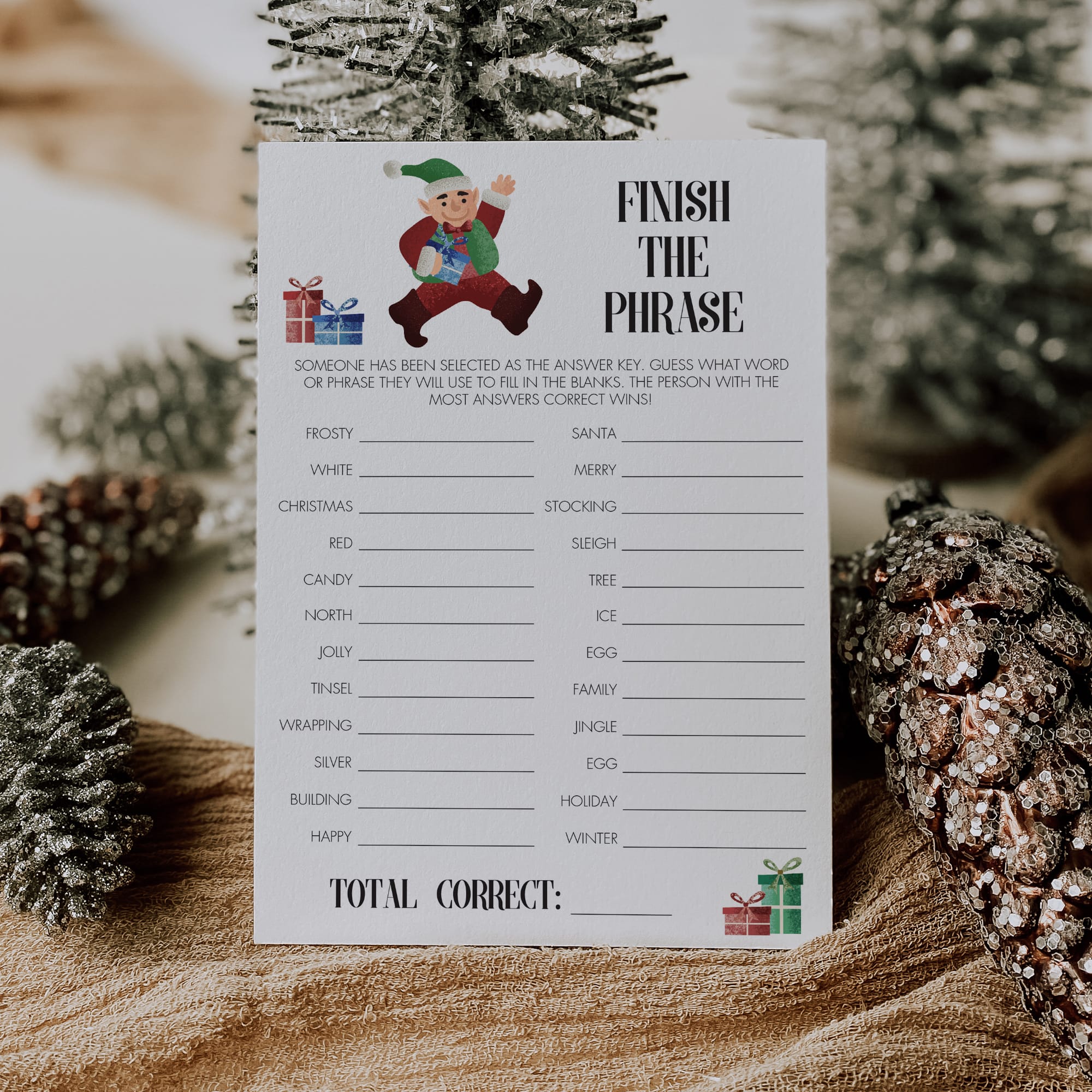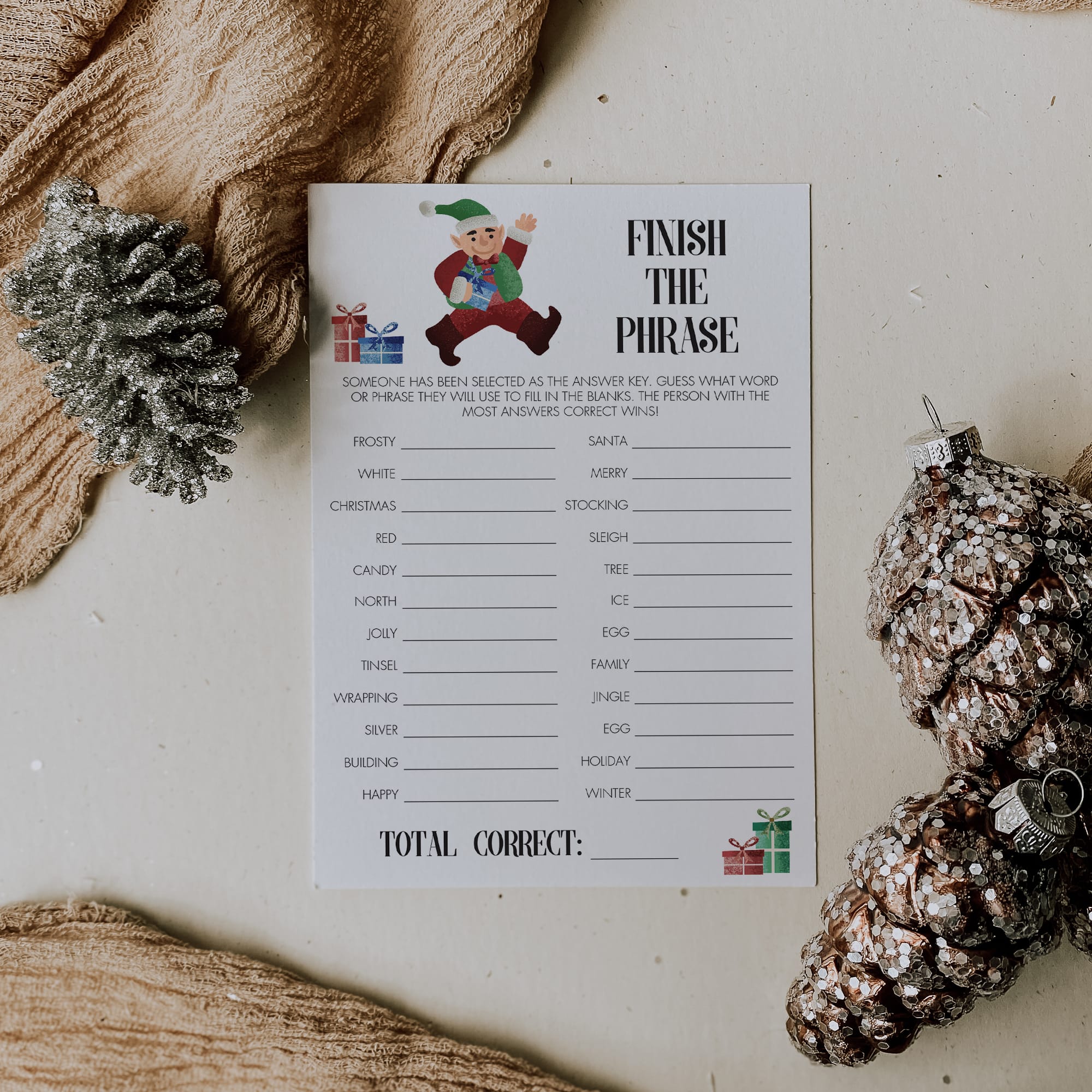 Finish The Phrase is a great game for a Holiday party with a large group of guests. It is a fun activity for (virtual) family get-togethers, company Christmas parties or for classrooms and very easy to play.