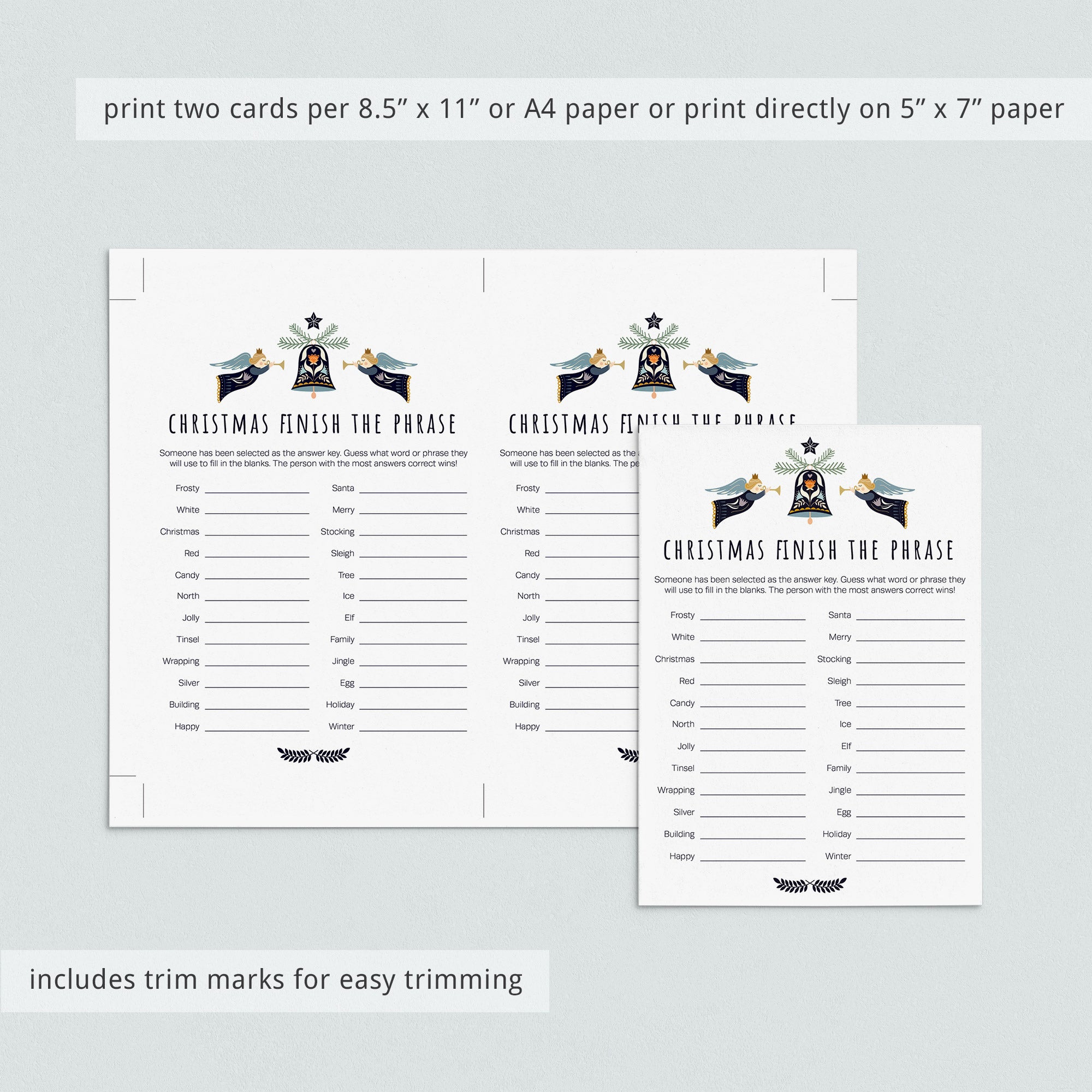 Finish The Phrase is a great game for a Christmas party with a group of friends or family. It is a fun activity for family get-togethers, company Christmas parties or for classrooms and very easy to play.