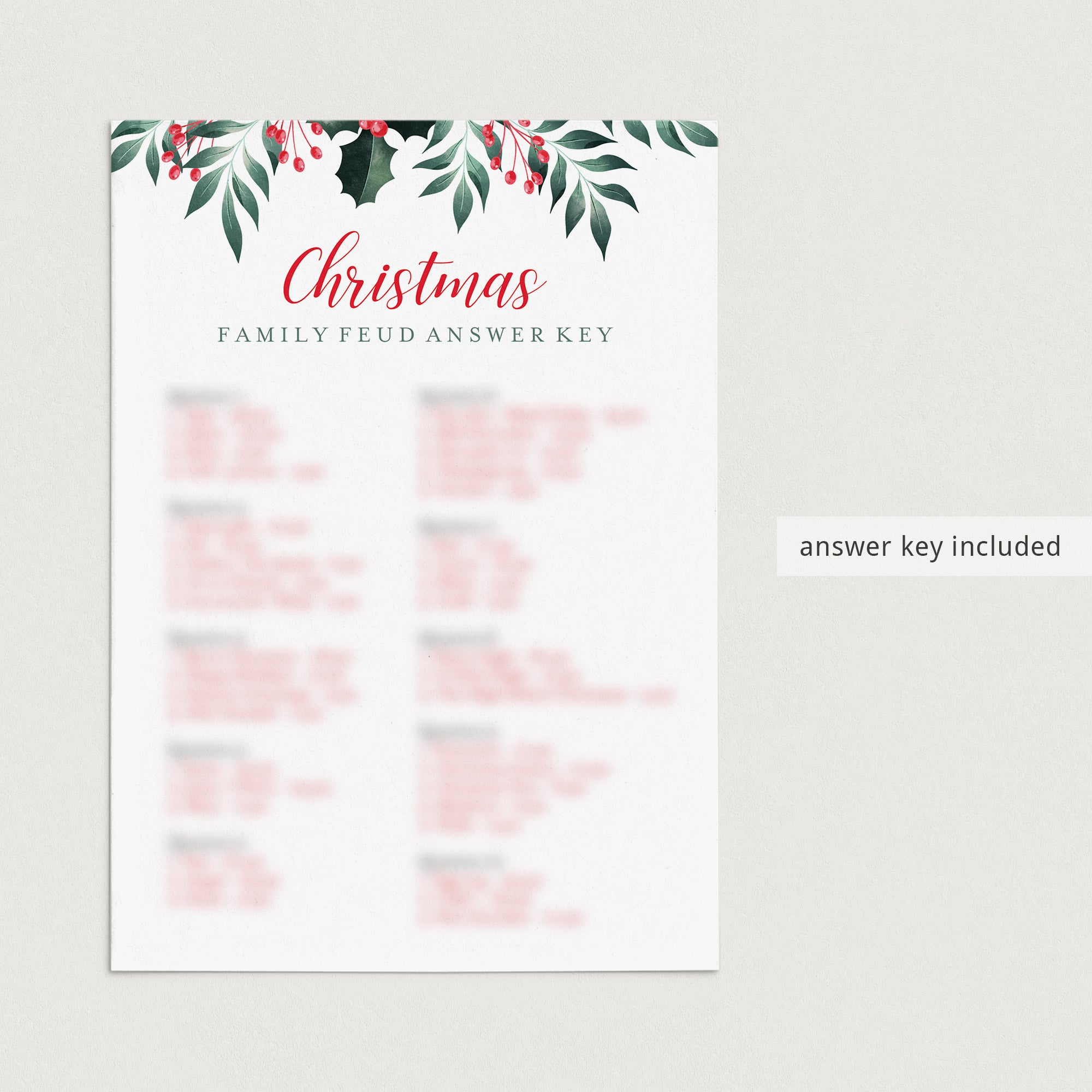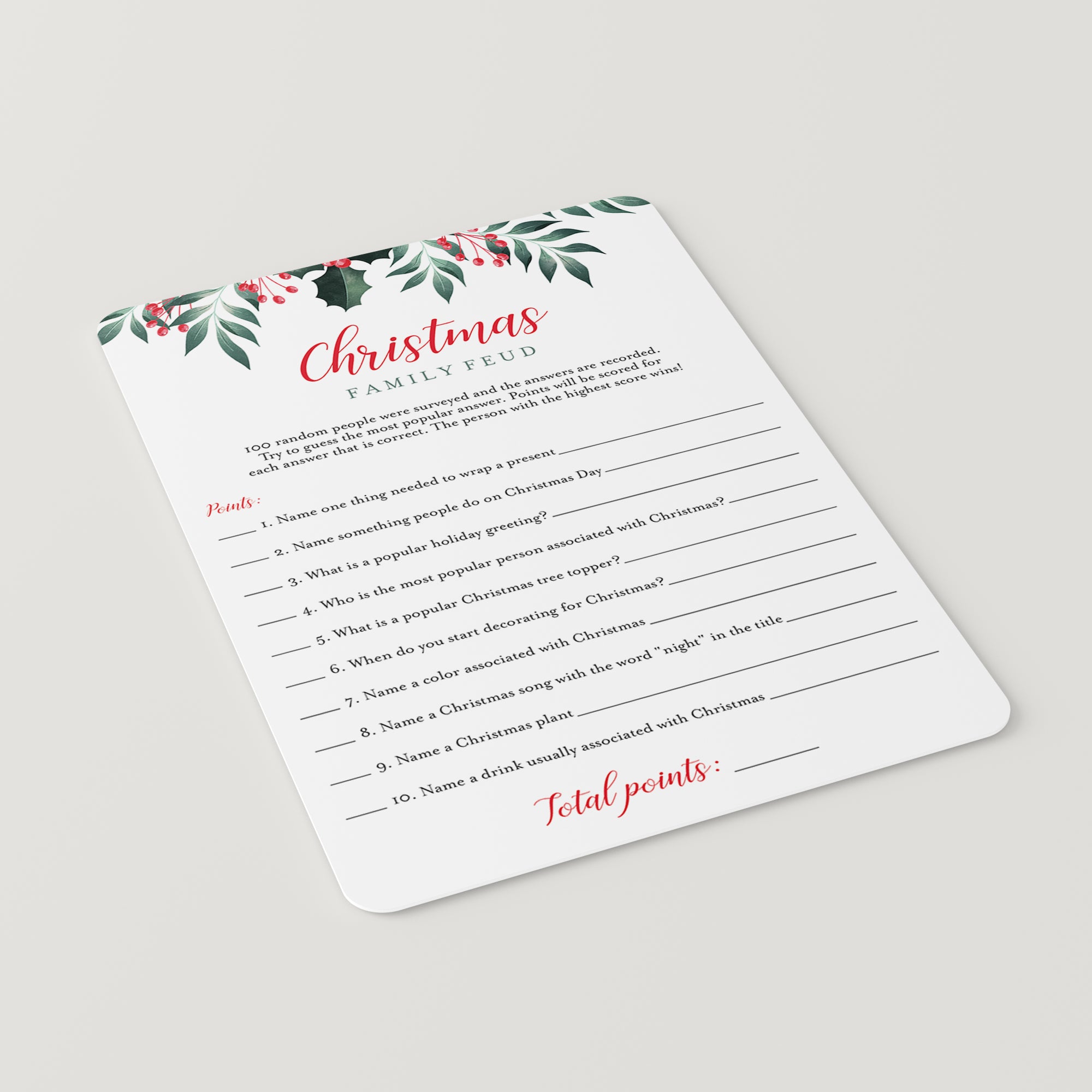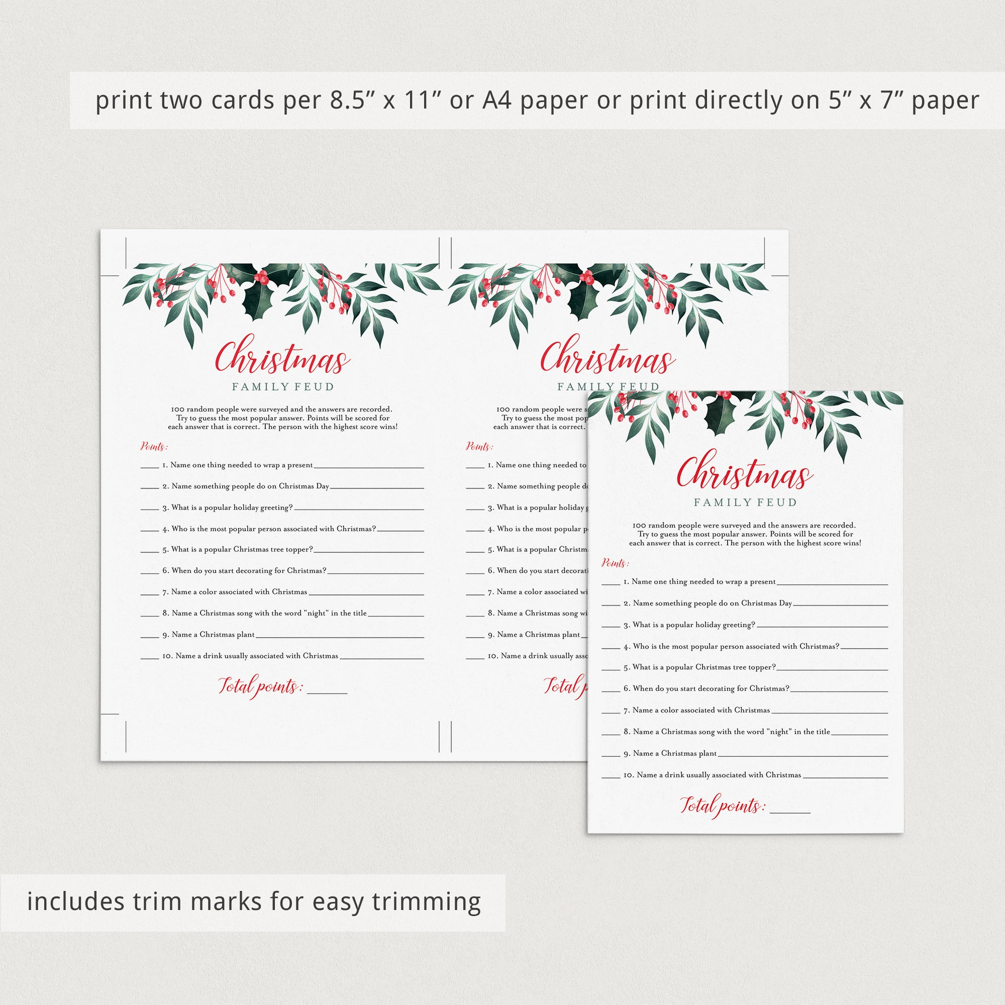 Are you looking for a fun game to play at your Christmas party? Play Holiday Family Feud with this gorgeous game card with watercolor Christmas holly.