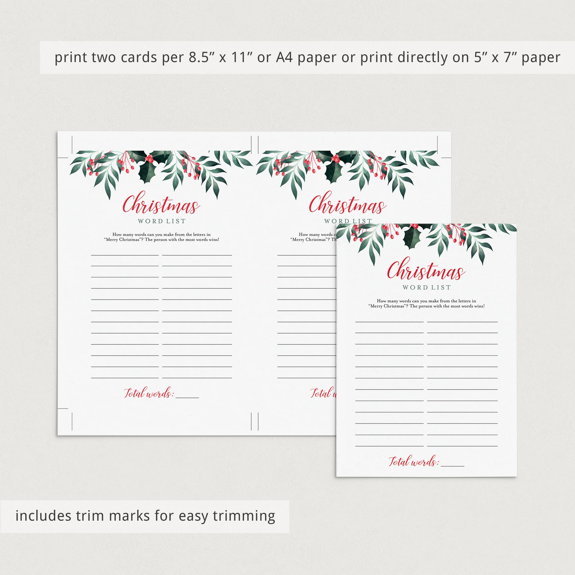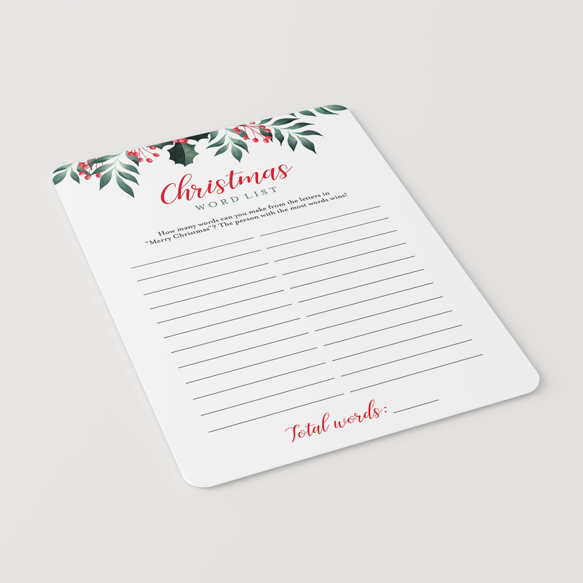 The game is very easy to play. How many words can you make from the letters in "Merry Christmas"? The person that gets the most words filled in within the set time, wins!