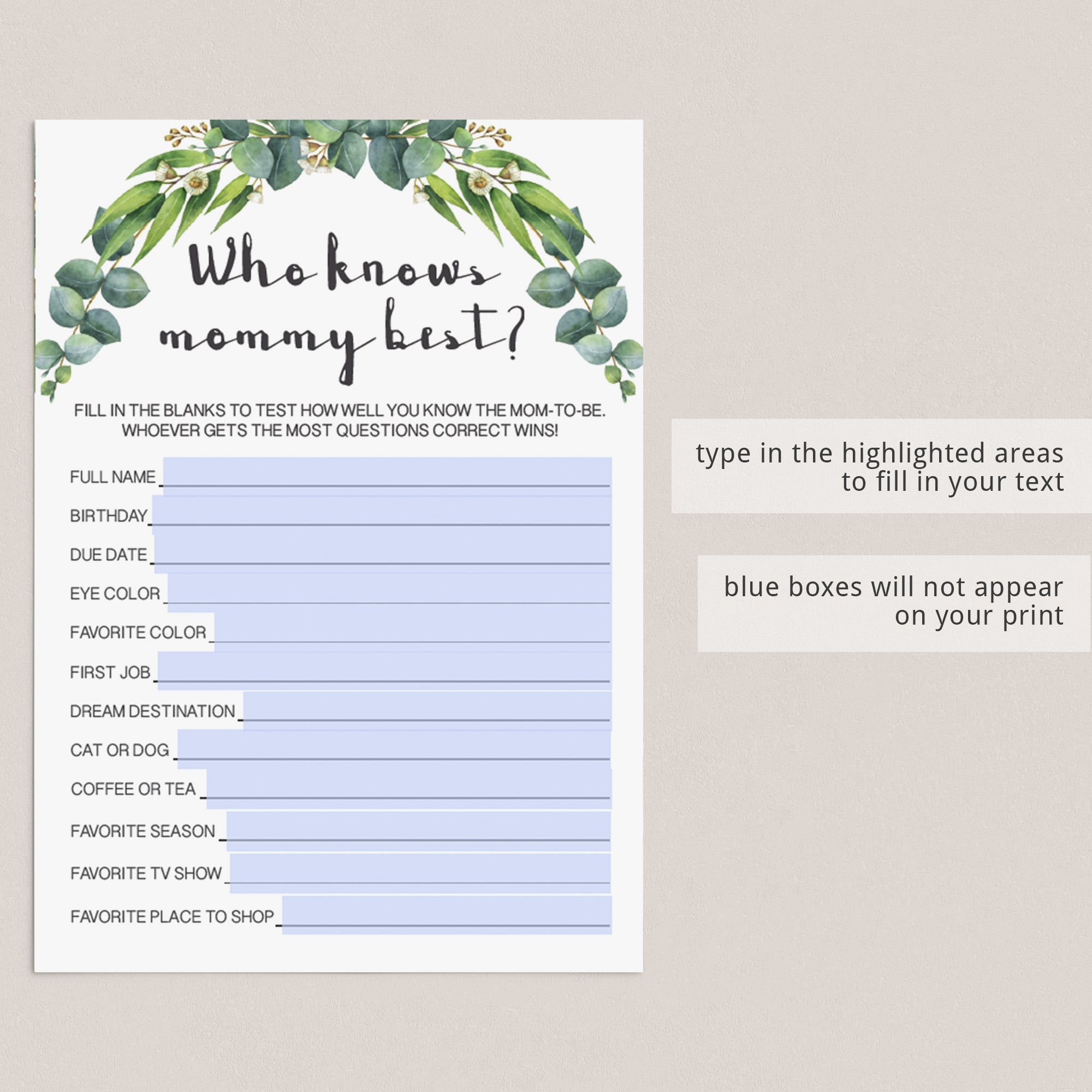 Are you hosting a virtual baby shower? Keep everyone involved with this bundle of 8 virtual baby shower games with watercolor eucalyptus leaves. The greenery game bundle includes the best games and keepsakes for your virtual baby shower. Printable and electronically fillable PDF templates are included.