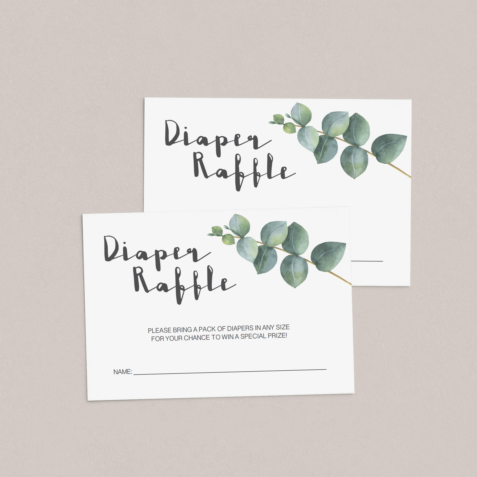 Who doesn't love a diaper raffle during a baby shower? Use this eucalyptus diaper raffle ticket to let your guests know they can win a great prize by bringing a pack of diapers. Include the neutral diaper raffle tickets in your baby shower invitations before sending them out.