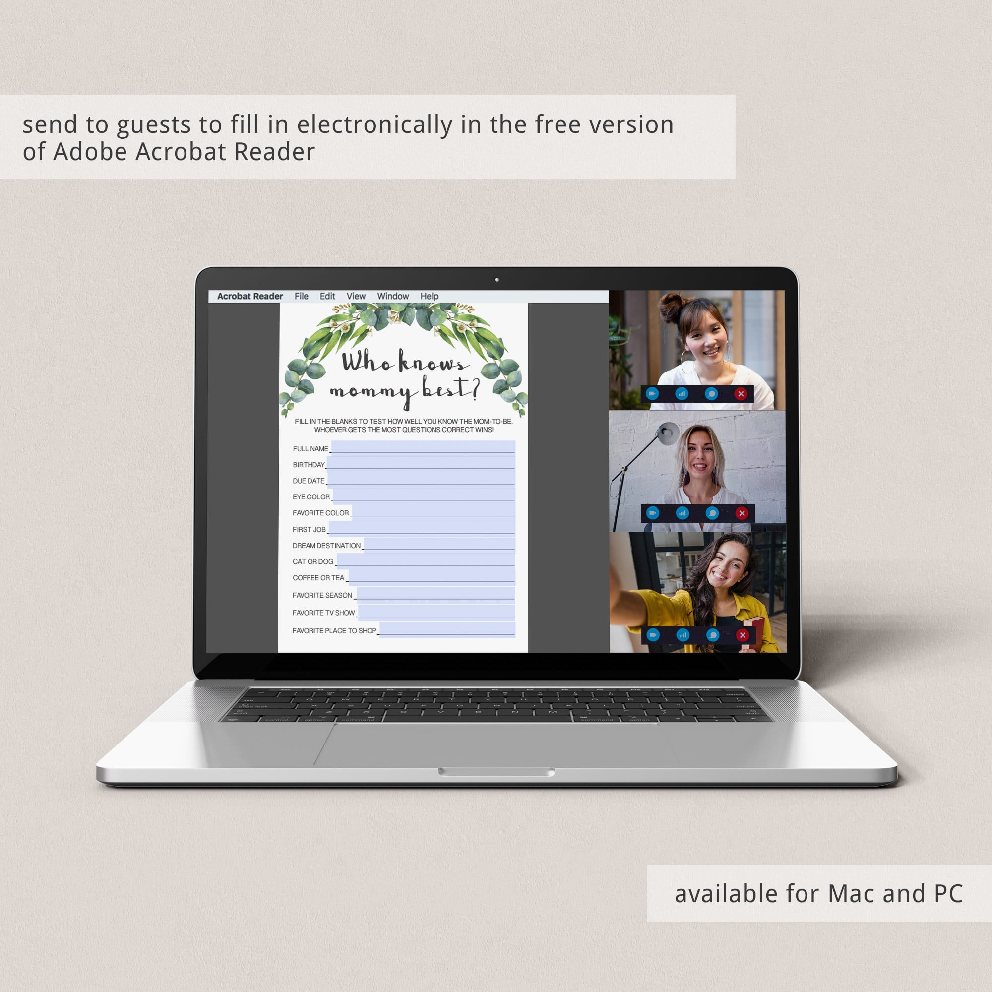And if you are hosting a virtual baby shower, you can email the mommy trivia game to friends and family and have them print the cards at home or fill in the answers electronically in the free version of Adobe Acrobat Reader.