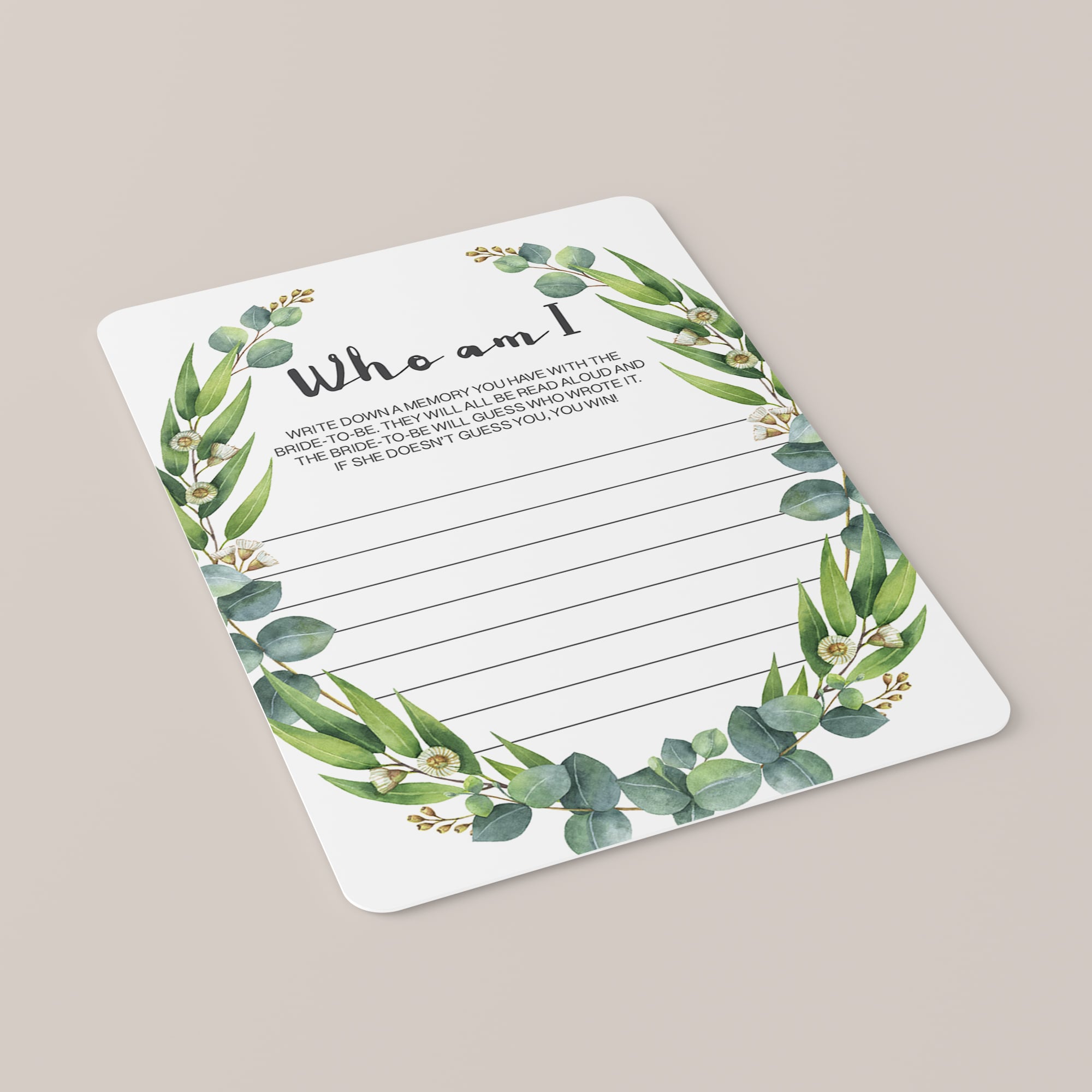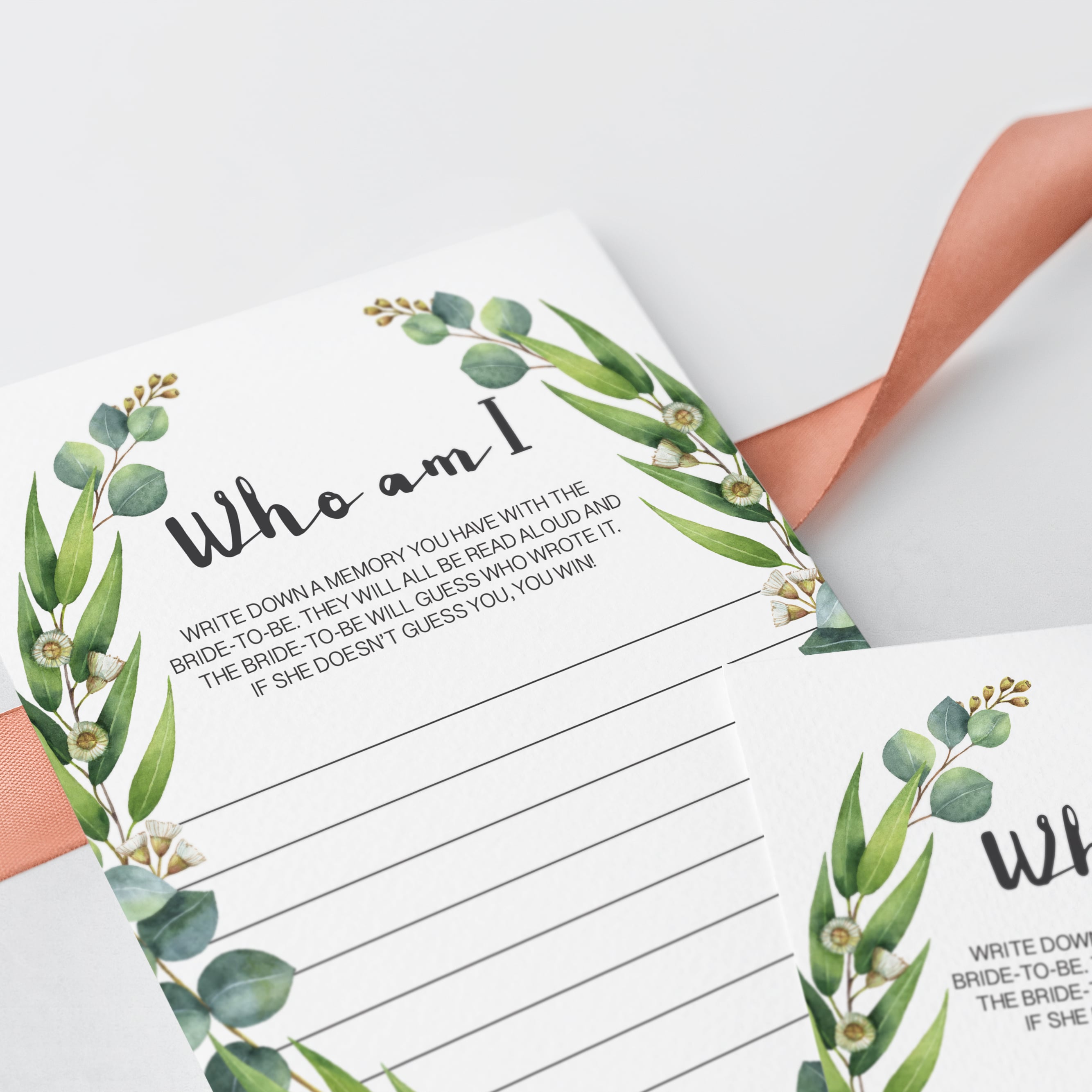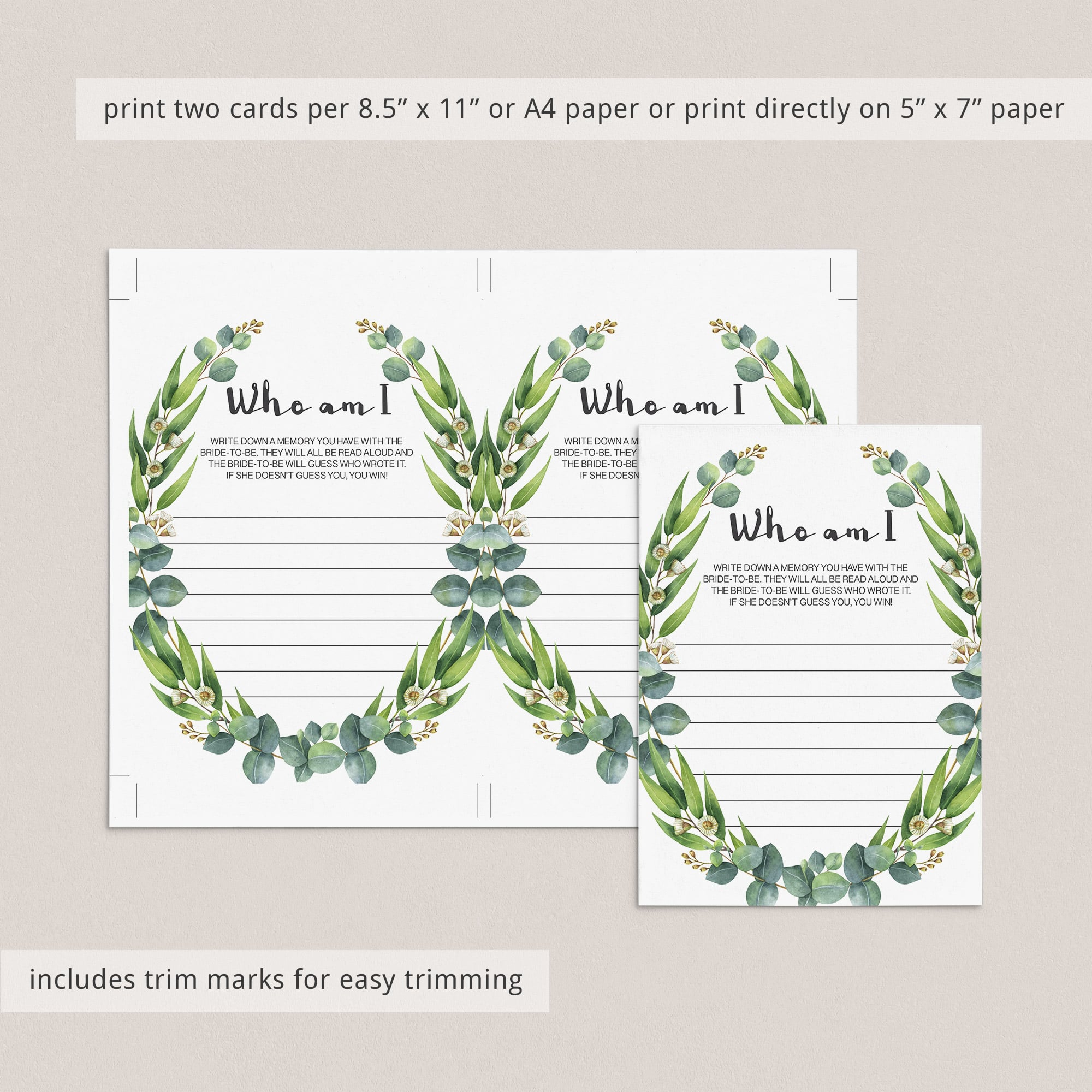 Are you looking for a fun game to play at your bridal shower? Play Who Am I with these beautiful greenery wreath memory game cards. It's the perfect addition to your garden or botanical bridal shower and it's sure to be a hit at your party!