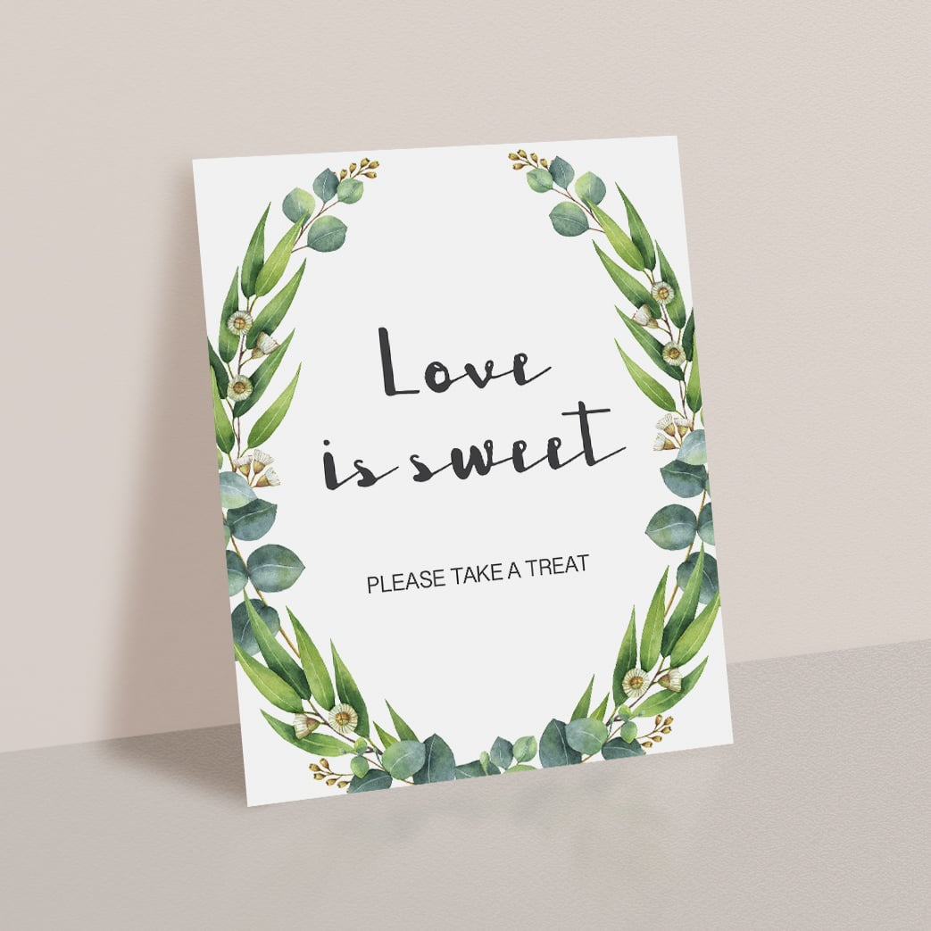 Favors are sweet, but so is love! Upgrade your bridal shower favors table with this beautiful greenery favors sign. It will be a great touch to your botanical bridal shower.