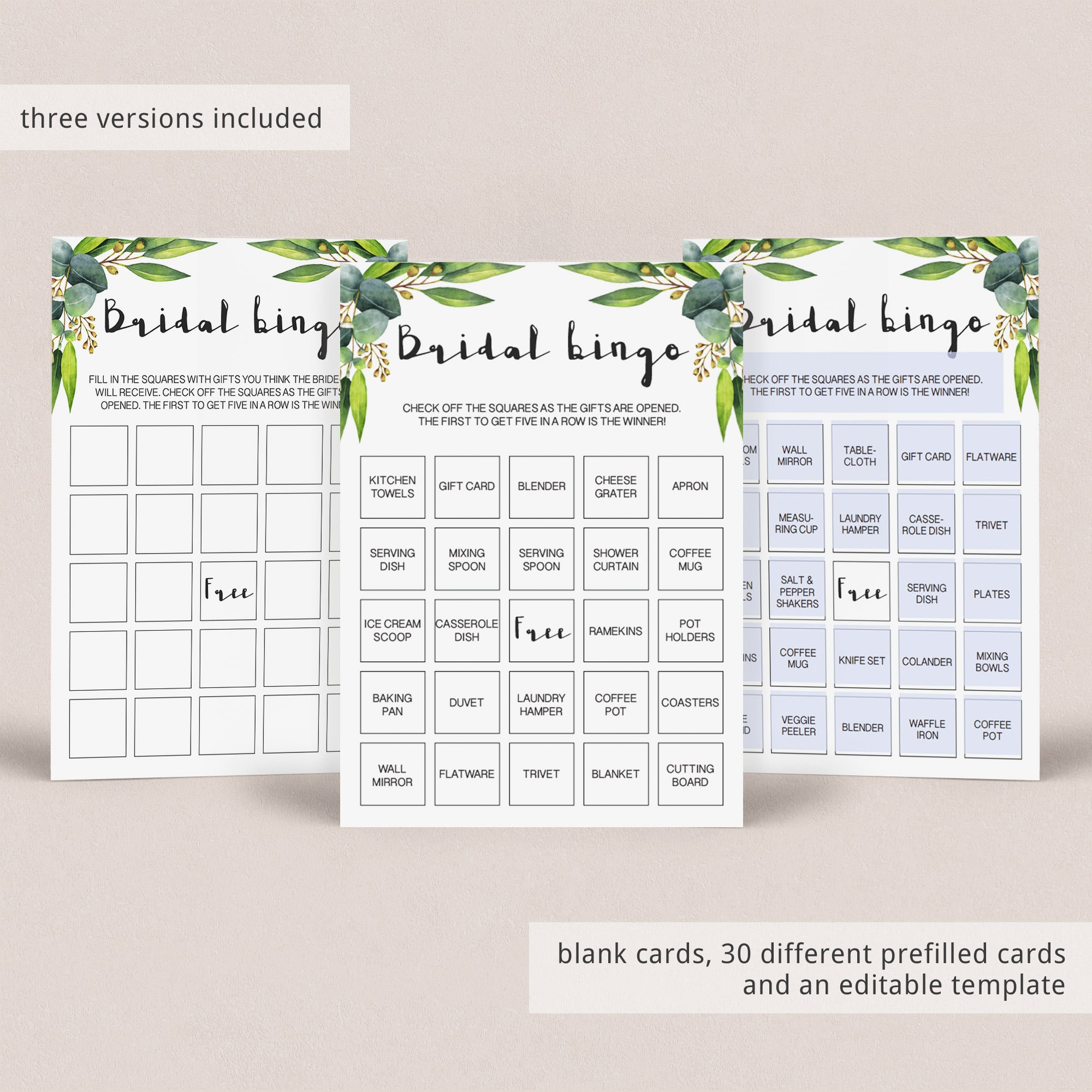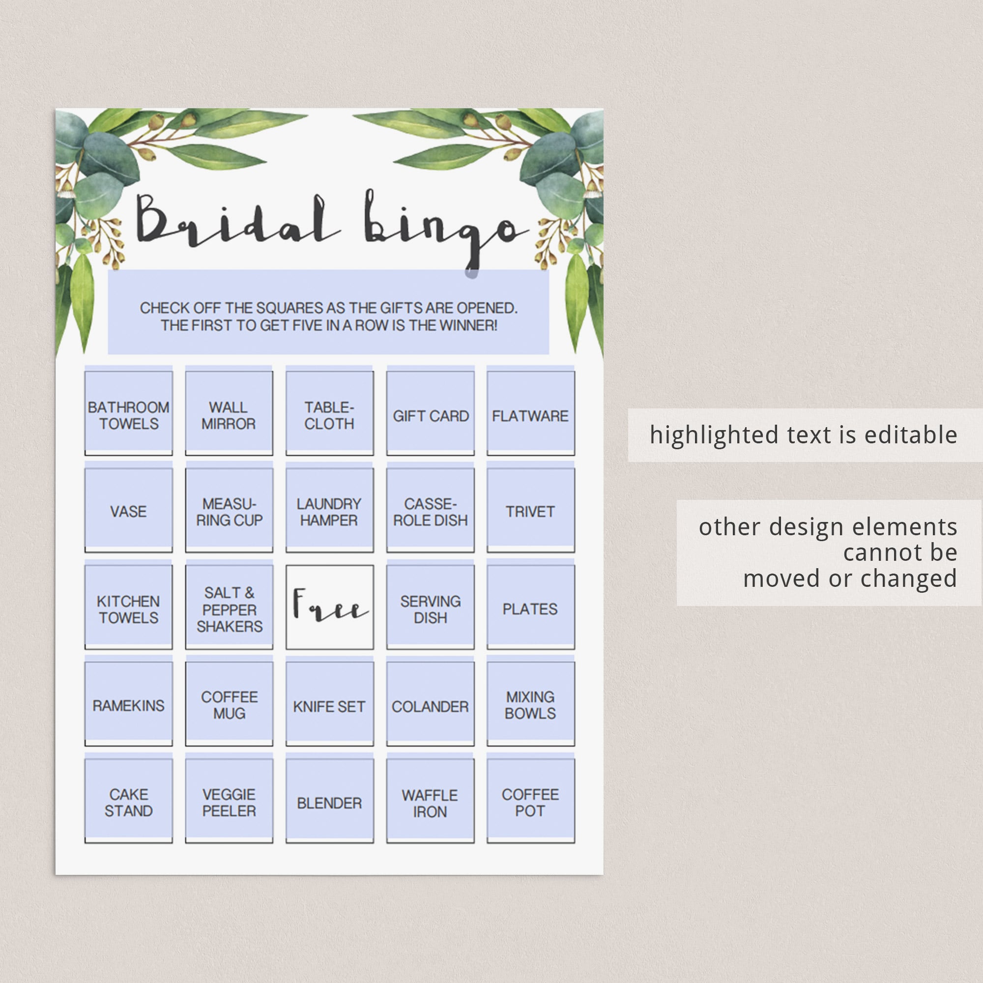 You think that unpacking gifts at a bridal shower is the dullest moment of the party? Not with these botanical bridal shower bingo cards! With it's watercolor eucalyptus leaves, they're the perfect addition to any greenery bridal shower.