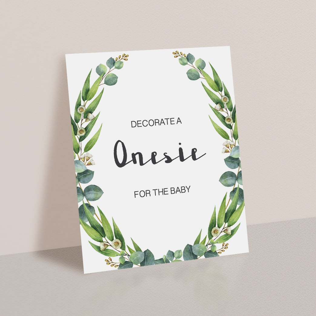 Draw attention to your Onesie Decorating Station by displaying this greenery Onesie Station sign in a cute frame.