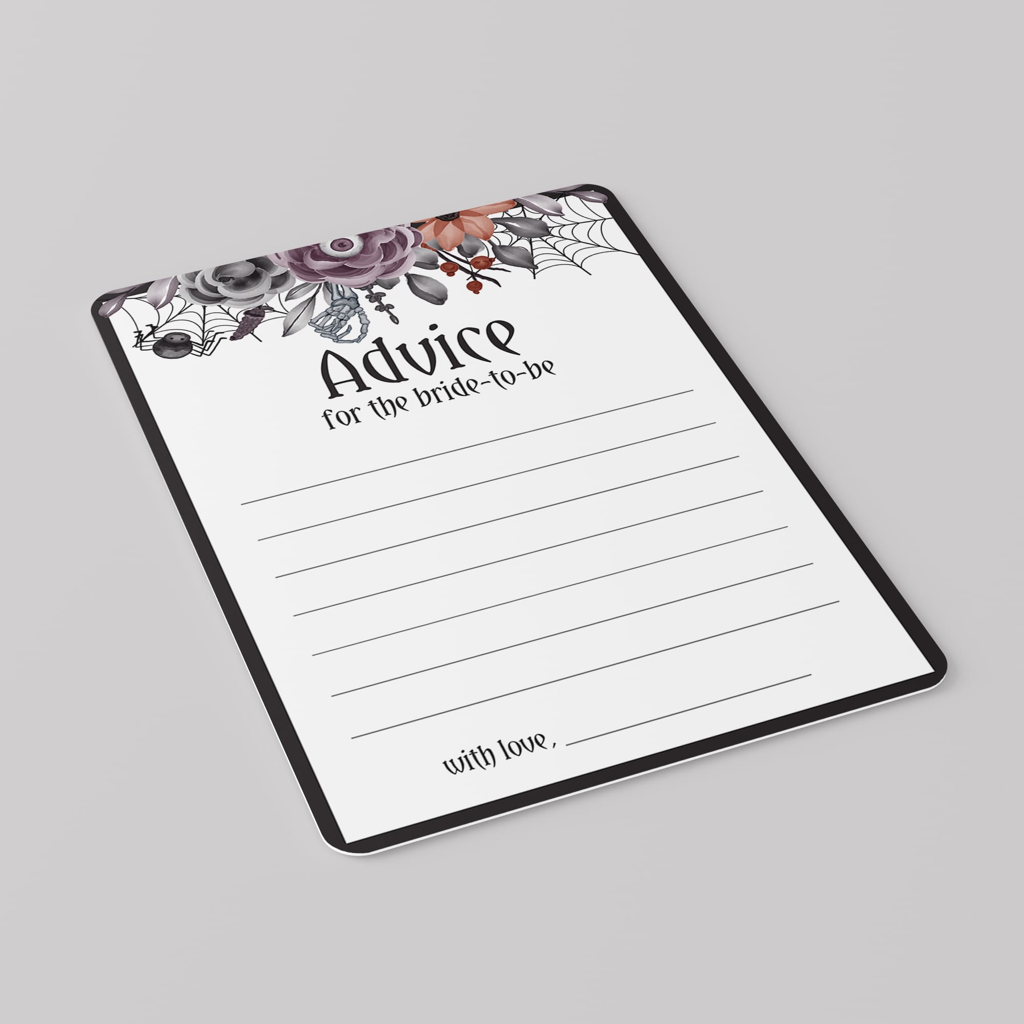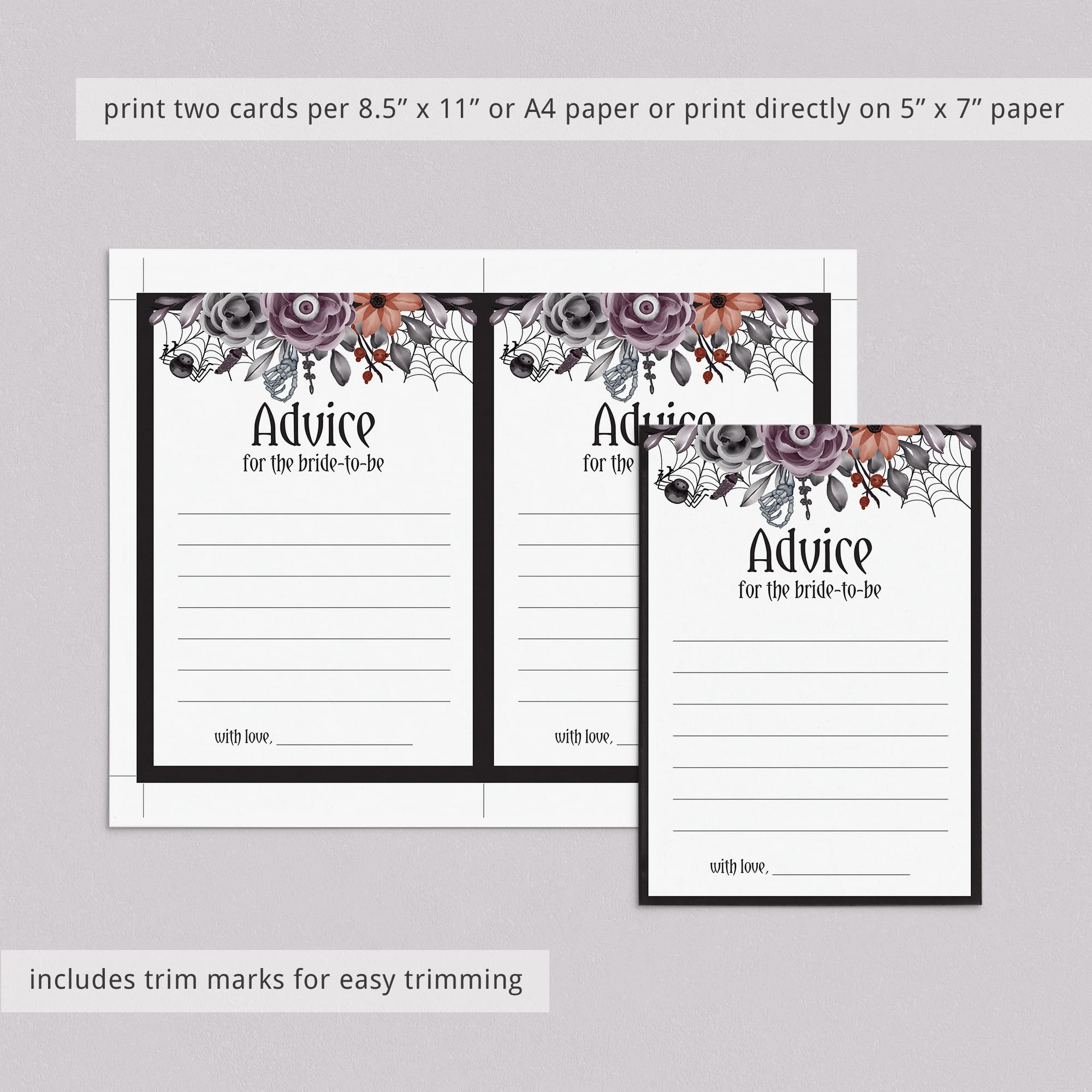 This Halloween bridal shower advice card is an instant download. After purchase you will receive a download link immediately on screen. Also within minutes of your order and payment, an e-mail will be sent to you with a link for your download.