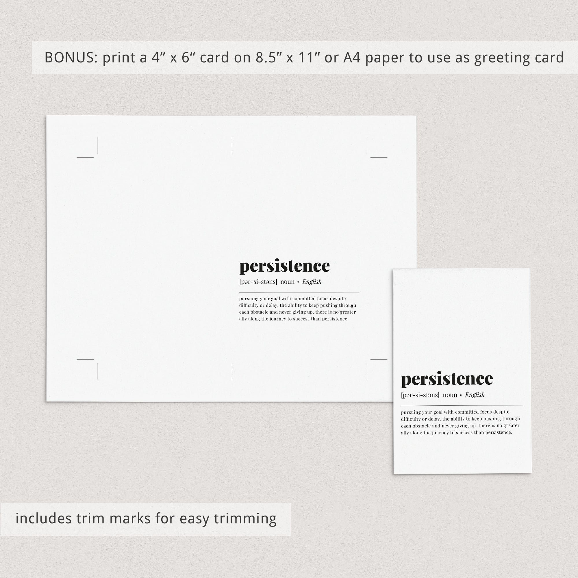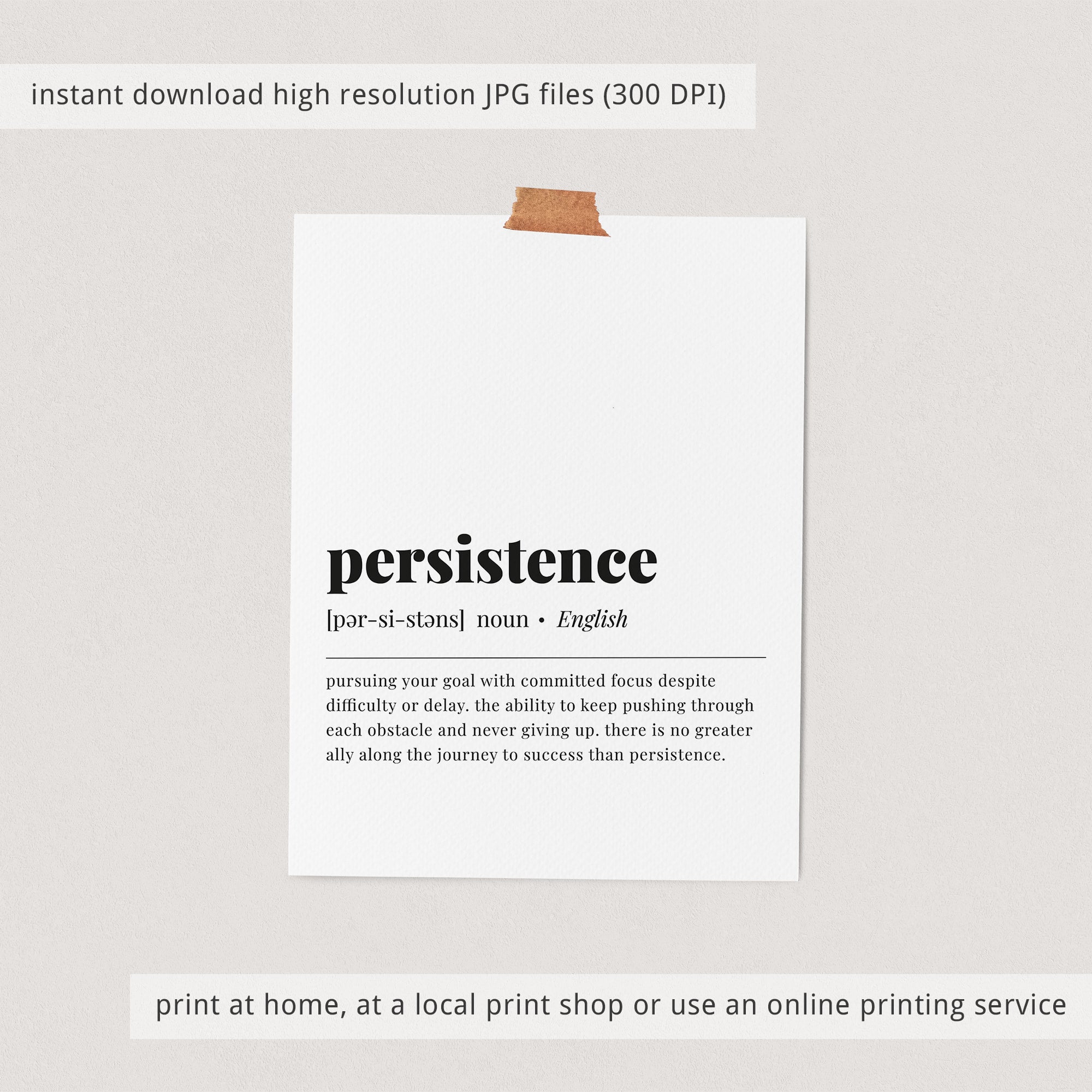 Are you looking for some motivational wall art for your home office, dorm or classroom? Look no further! This modern minimalist persistence definition print is designed to motivate and encourage you. The persistence poster is sure to add a motivational reminder to any space.
