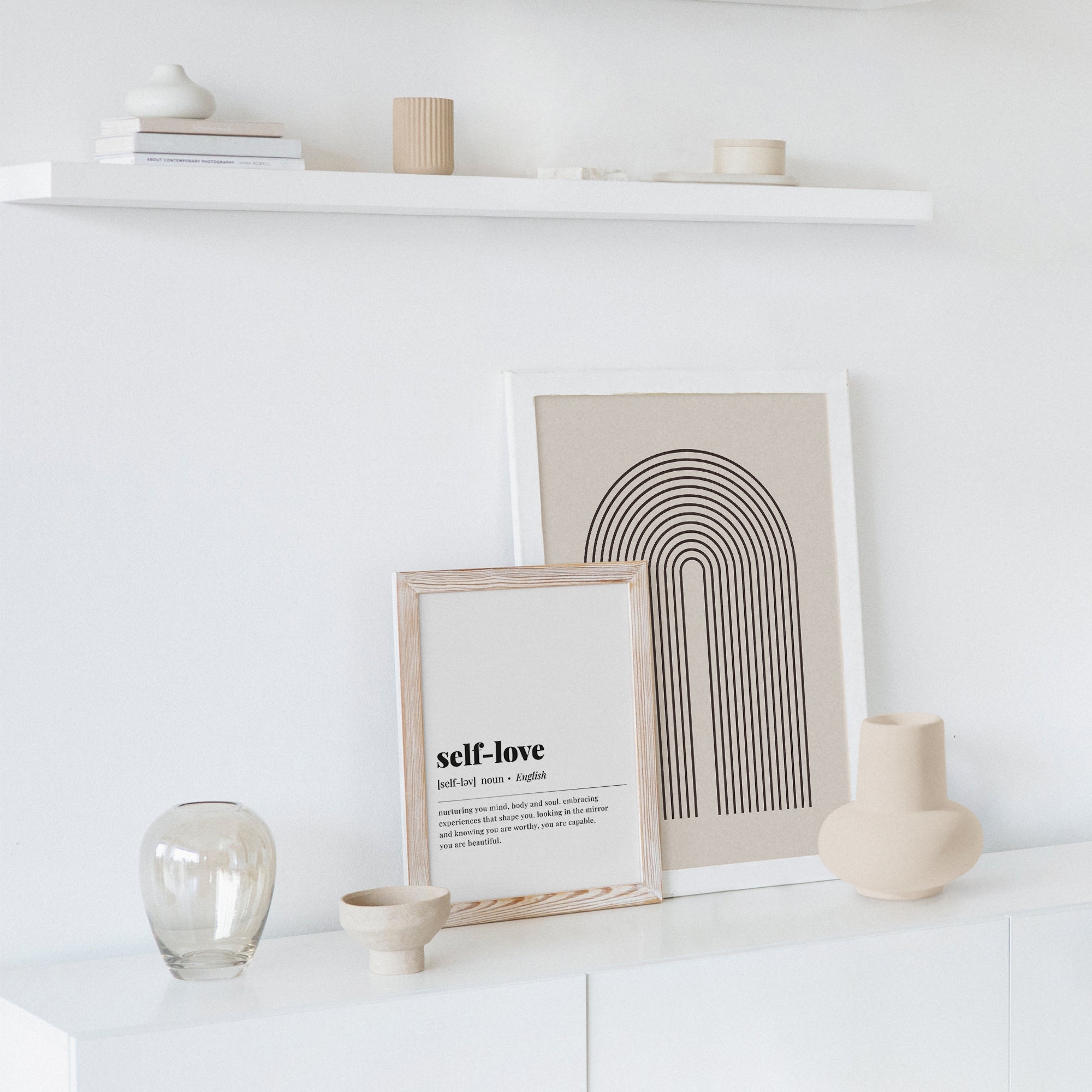If you have ever struggled with self-esteem issues or not had a good understanding of how to improve self-love and self-acceptance, this self-love definition print will help. This print is done in a classic and simple black and white and is perfect for your bedroom, bathroom, office or entryway.