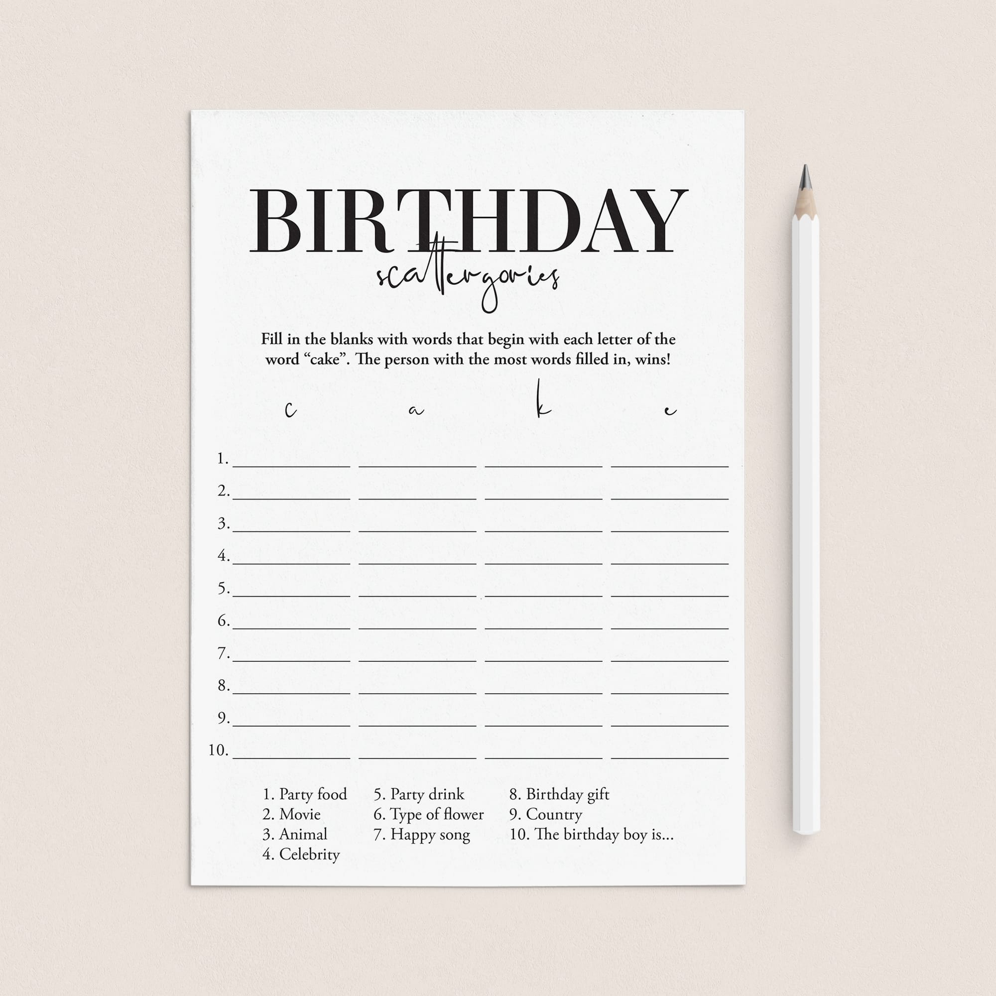 • Birthday Scattergories