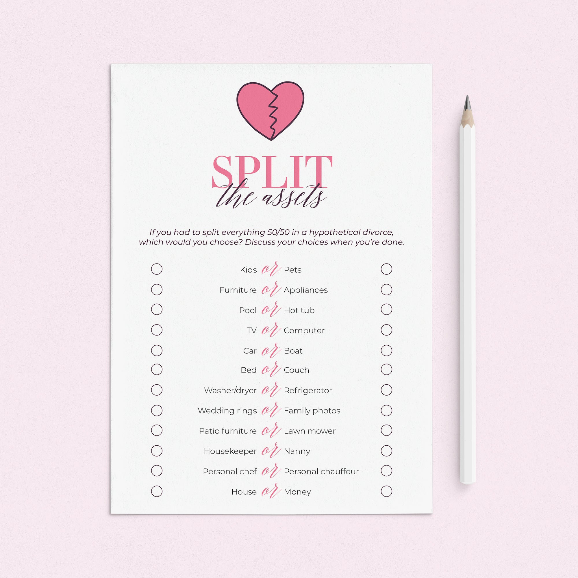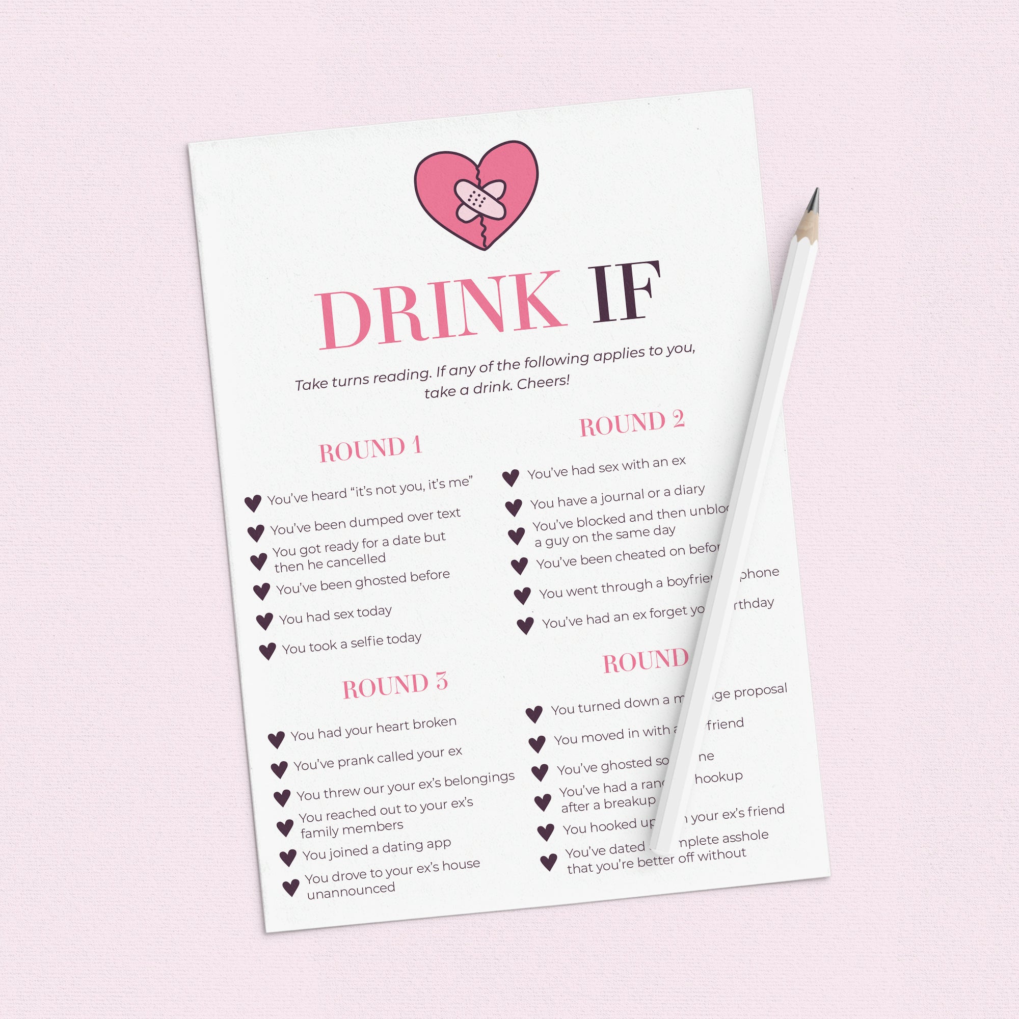 A breakup is one of the most challenging things a person can go through. A breakup party can help the newly single turn a new page. Activities and games can be a fun cheeky way to bring some humor to the situation. This breakup party game bundle is the perfect addition to your newly single girls night.