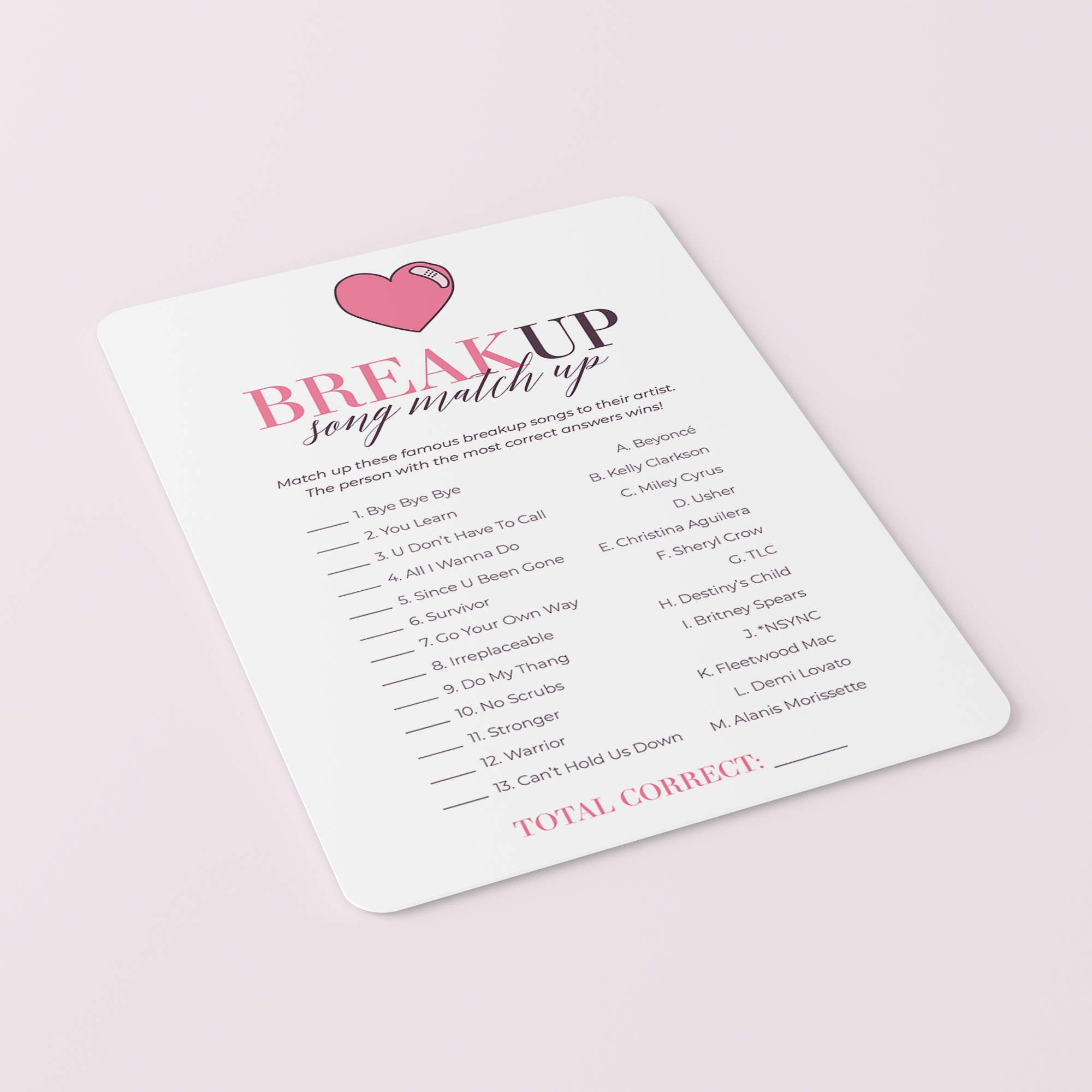 • Breakup Song Match Up (answer key included)