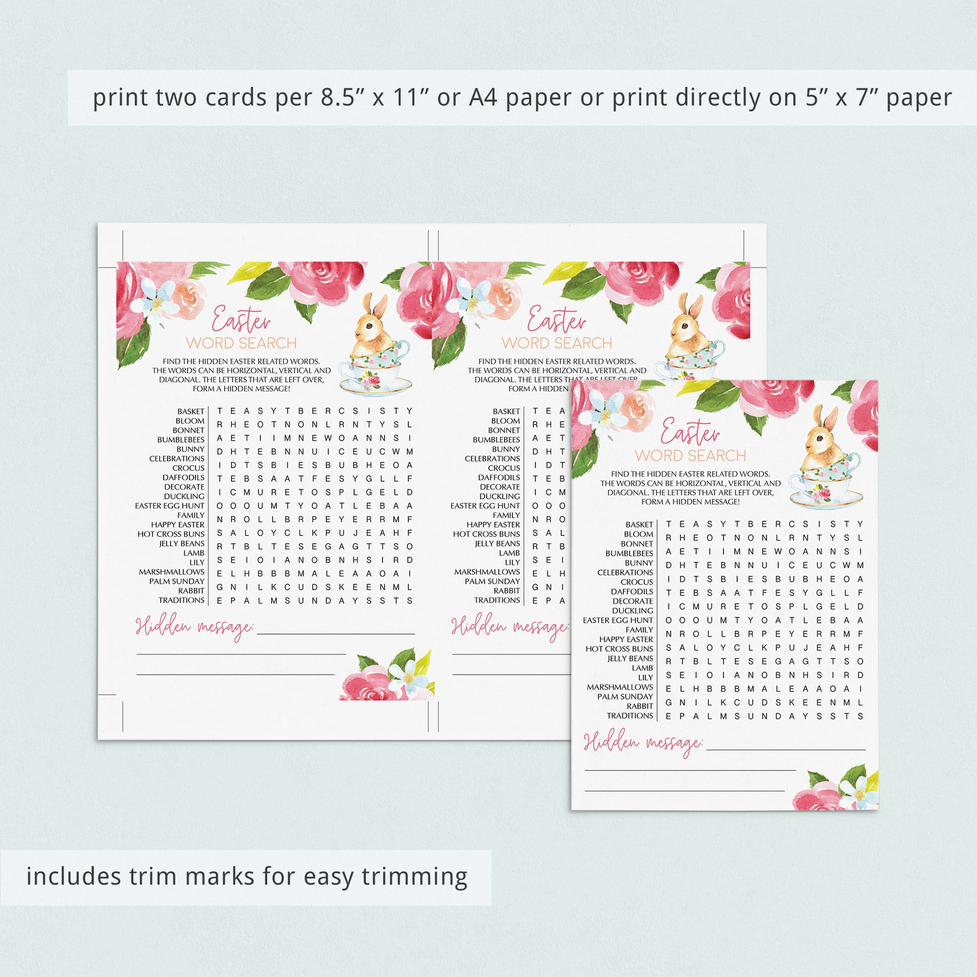 Let everyone search for all Easter related words that are listed on these gorgeous floral game cards. The words can be found horizontally, vertically and diagonally.