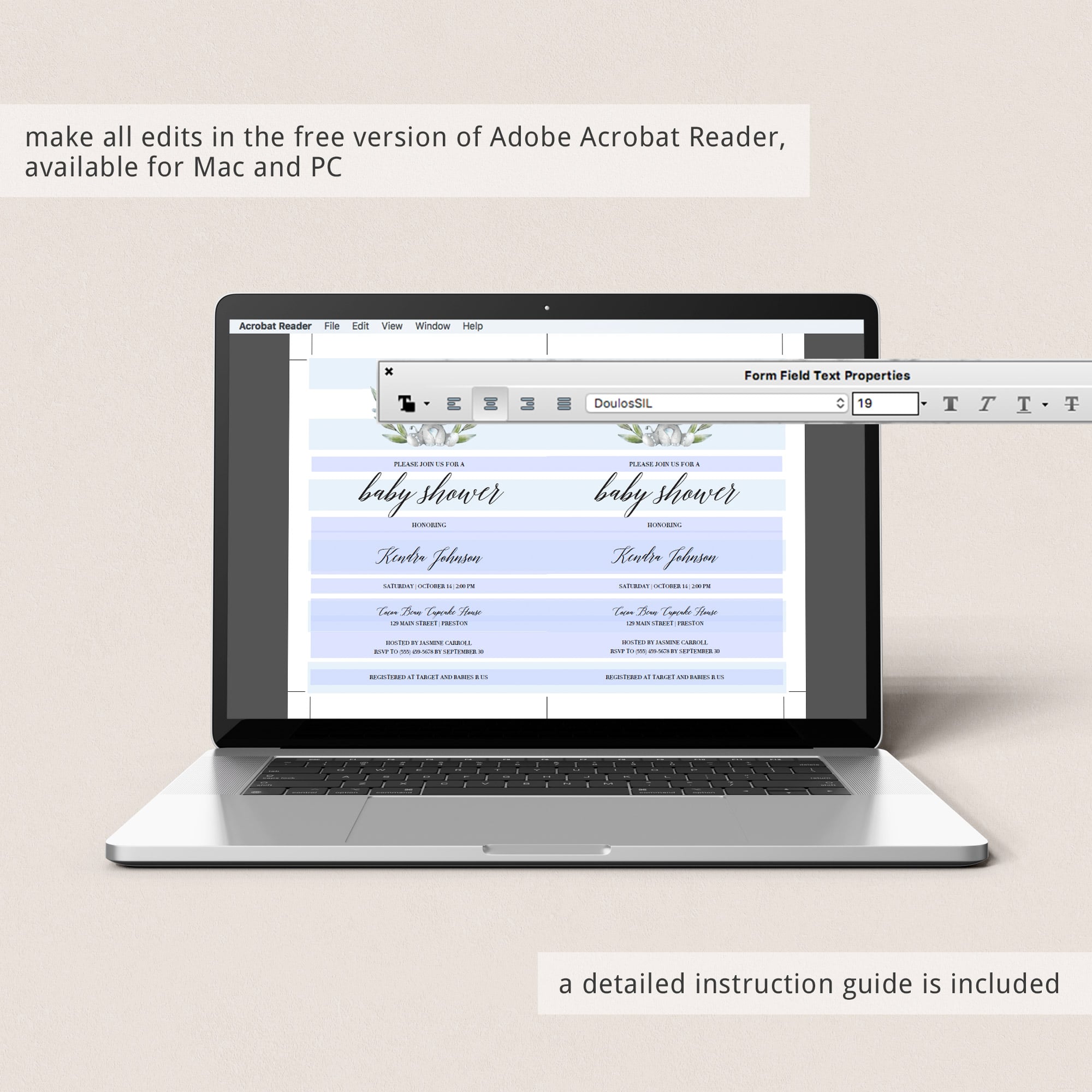 • 1 Editable PDF sized 5” x 7” to print or to use as evite