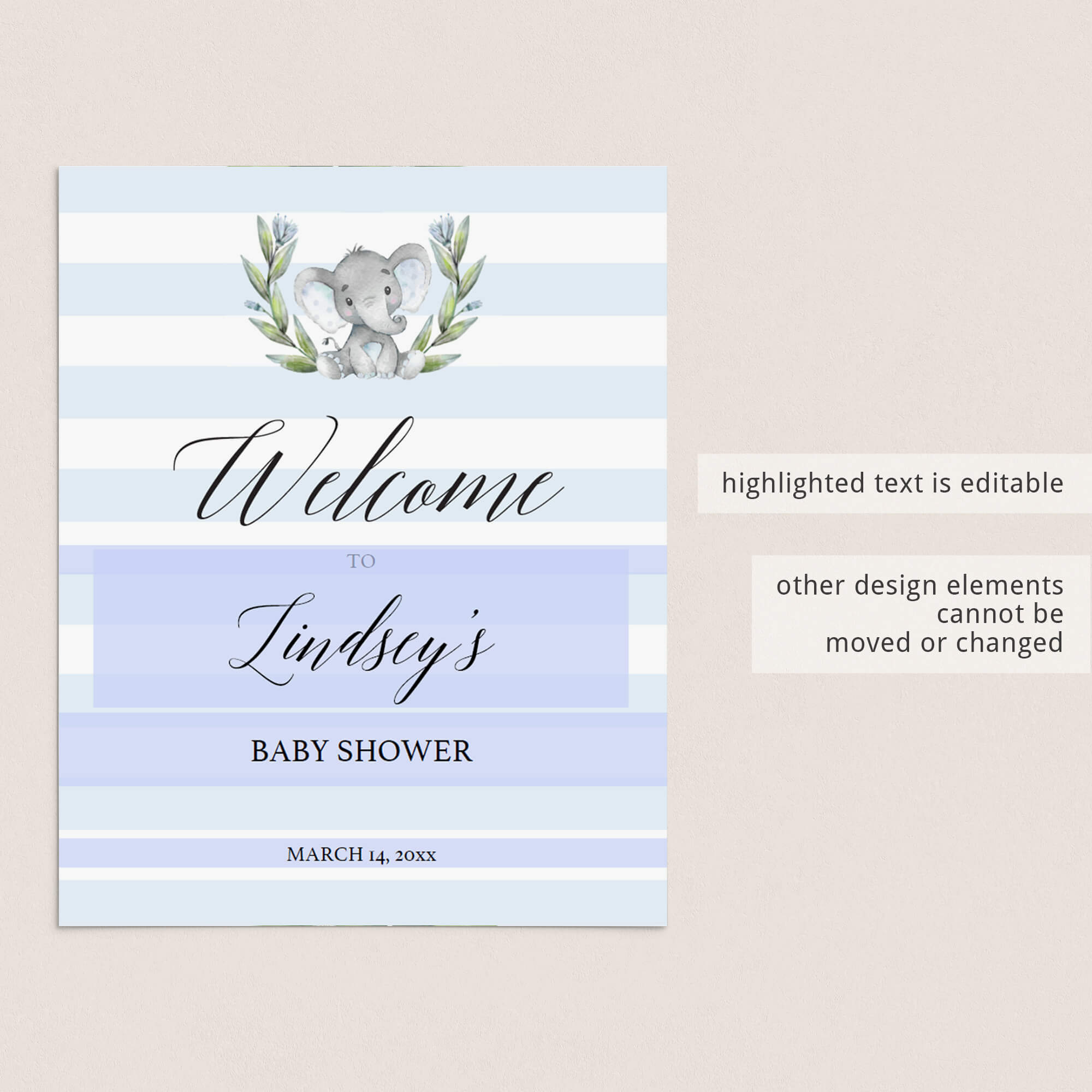 No worries, we've got you covered with this adorable Elephant baby Shower for Boy Full Bundle. The unique blue and white design with watercolor grey elephant will make everyone excited and you'll easily create a cohesive looking event.