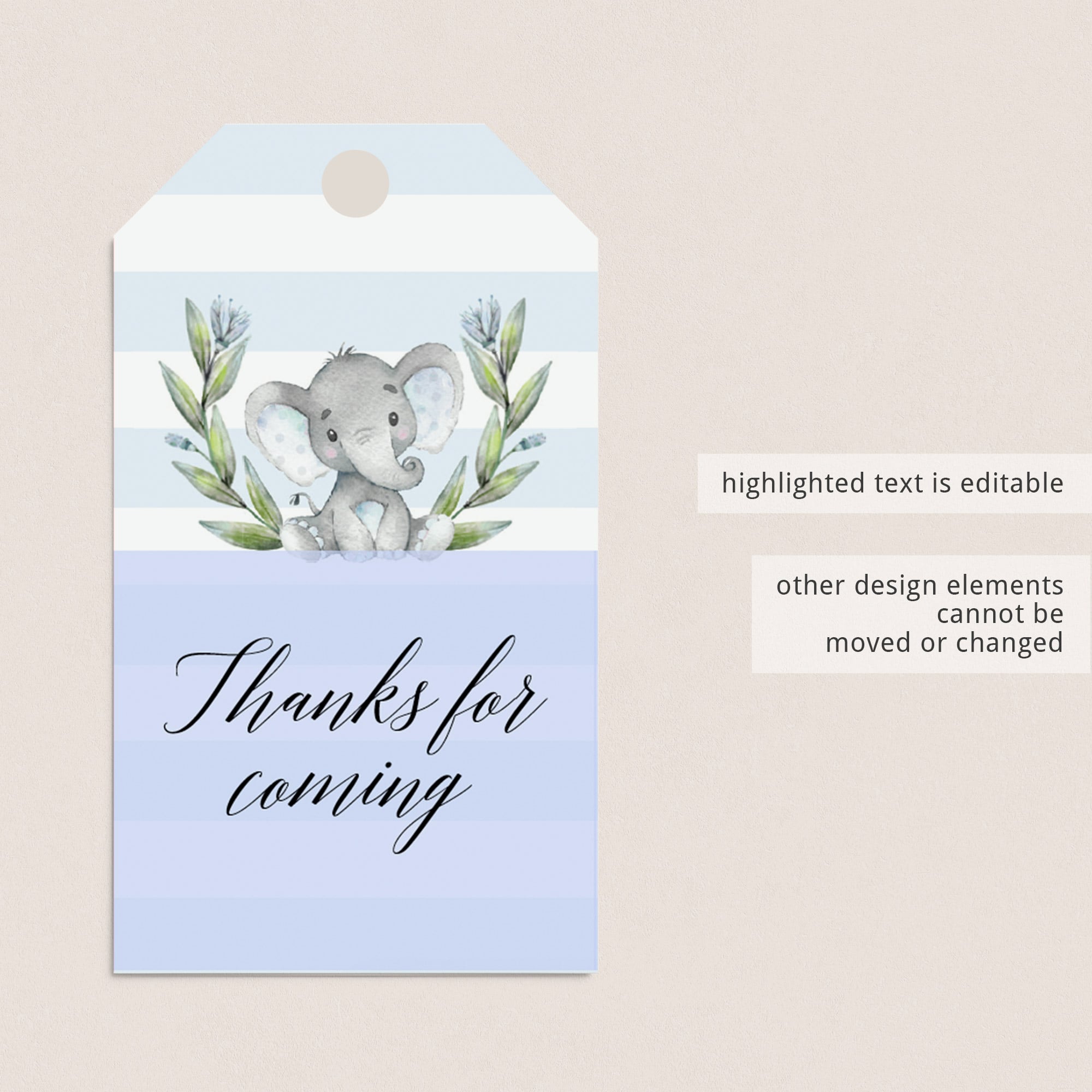 These Elephant Boy Baby Shower printables are instant downloads. After purchase you will receive a download link immediately on screen. Also within minutes of your order and payment, an e-mail will be sent to you with a link for your download.