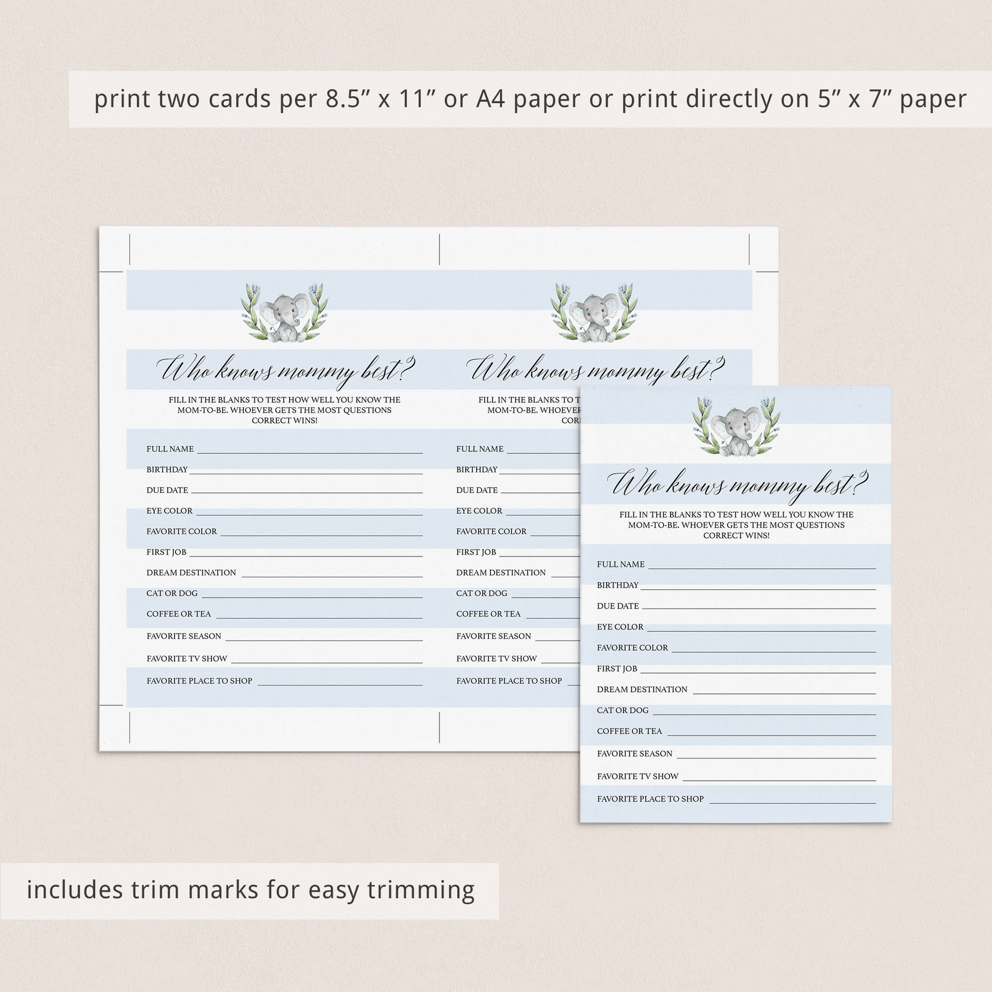This full bundle with 19 elephant baby shower printables includes everything you need to make the mom-to-be feel special and keep your guests entertained. Everyone will think you've hired a professional party planner!
