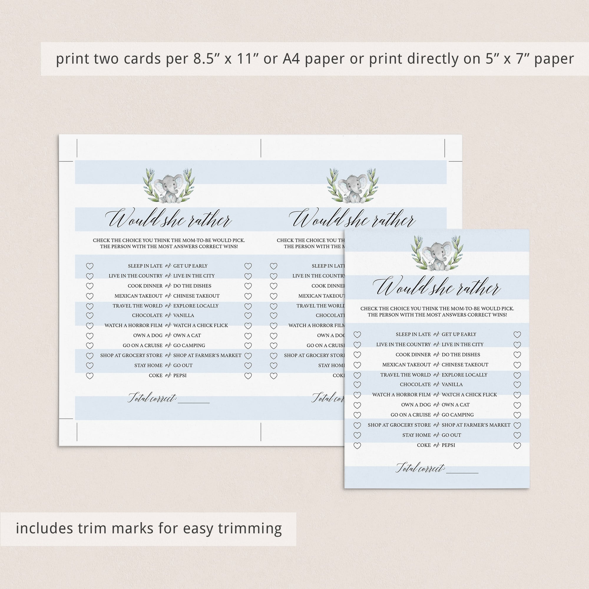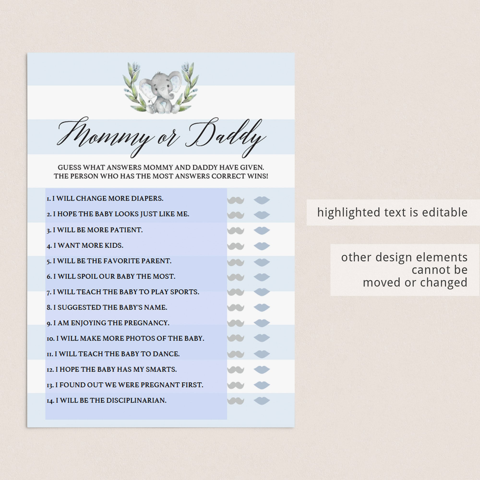 Entertain your baby shower guests with this package of elephant themed boy baby shower games. The set includes everything you need to entertain large groups with a variety of fun and interactive games.