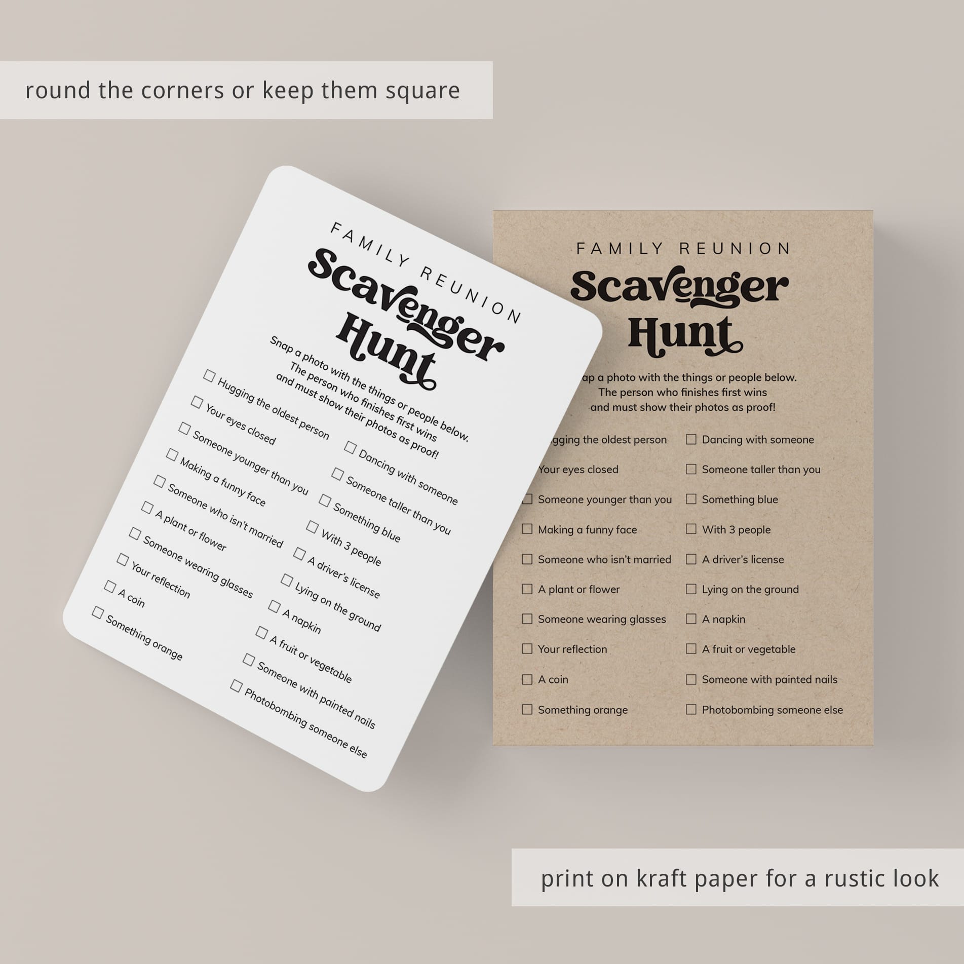 Add some fun to your family reunion with this Selfie Scavenger Hunt party game. Let your family members snap a photo with the things or people listed on the game card. The person who finishes first wins! It's a great family reunion activity for kids and adults of all ages!