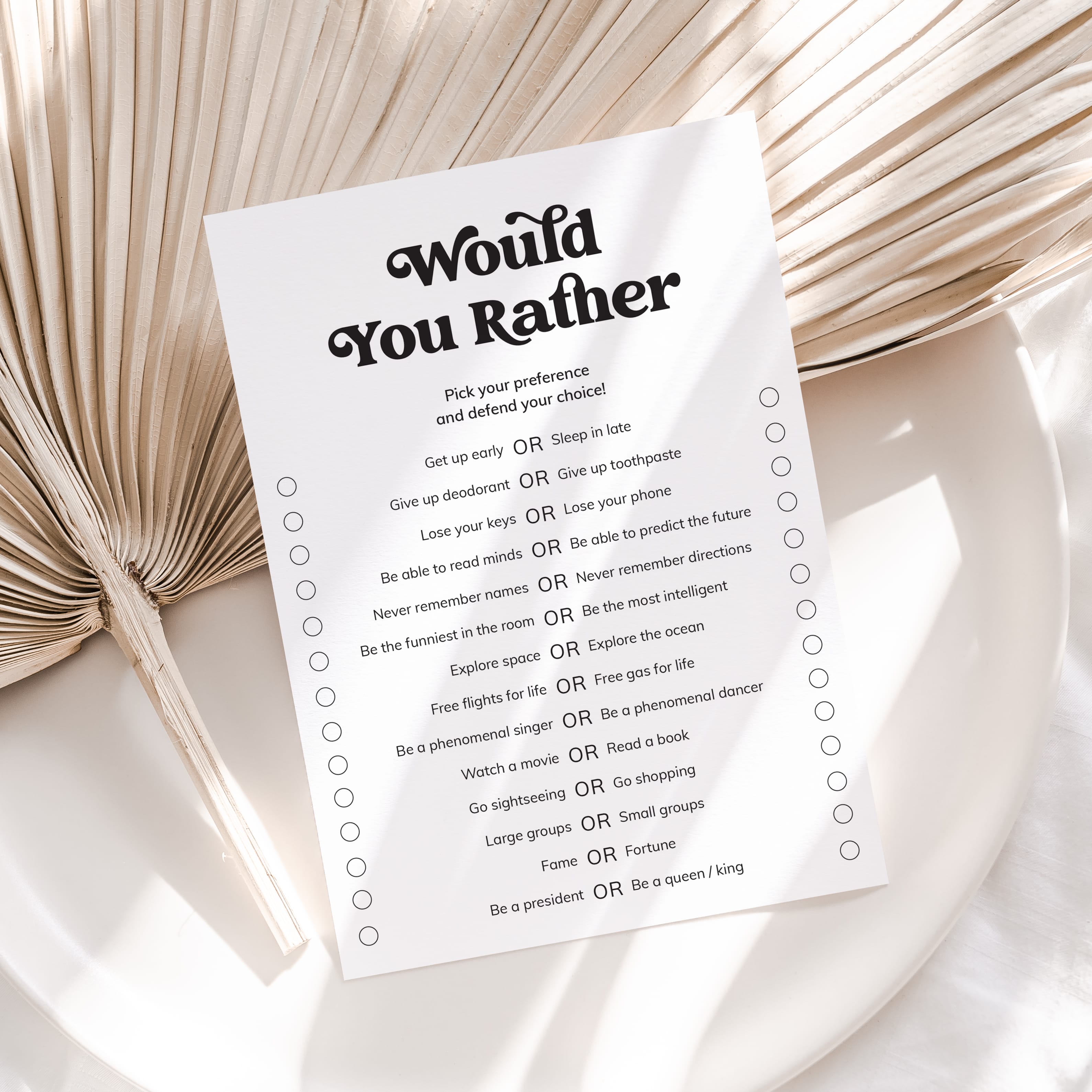 Print the games right from your computer in a matter of minutes or have the cards printed at your favorite print shop. The games have been designed in black and white. You can print on kraft paper to create a rustic look or print on colored card stock to match your party color palette. We recommend printing on a nice heavy card stock for highest quality feel.