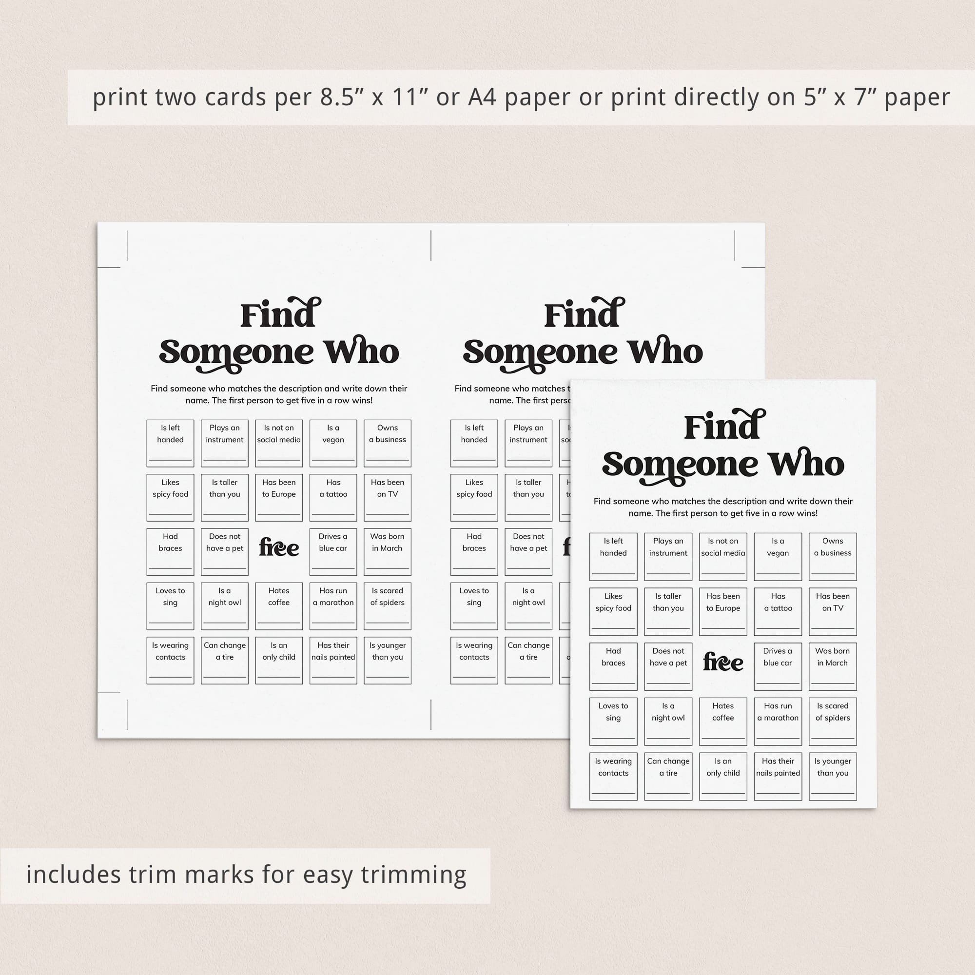 This printable Find Someone Who Human Bingo is an instant download. After purchase you will receive a download link immediately on screen. Also within minutes of your order and payment, an e-mail will be sent to you with a link for your download.