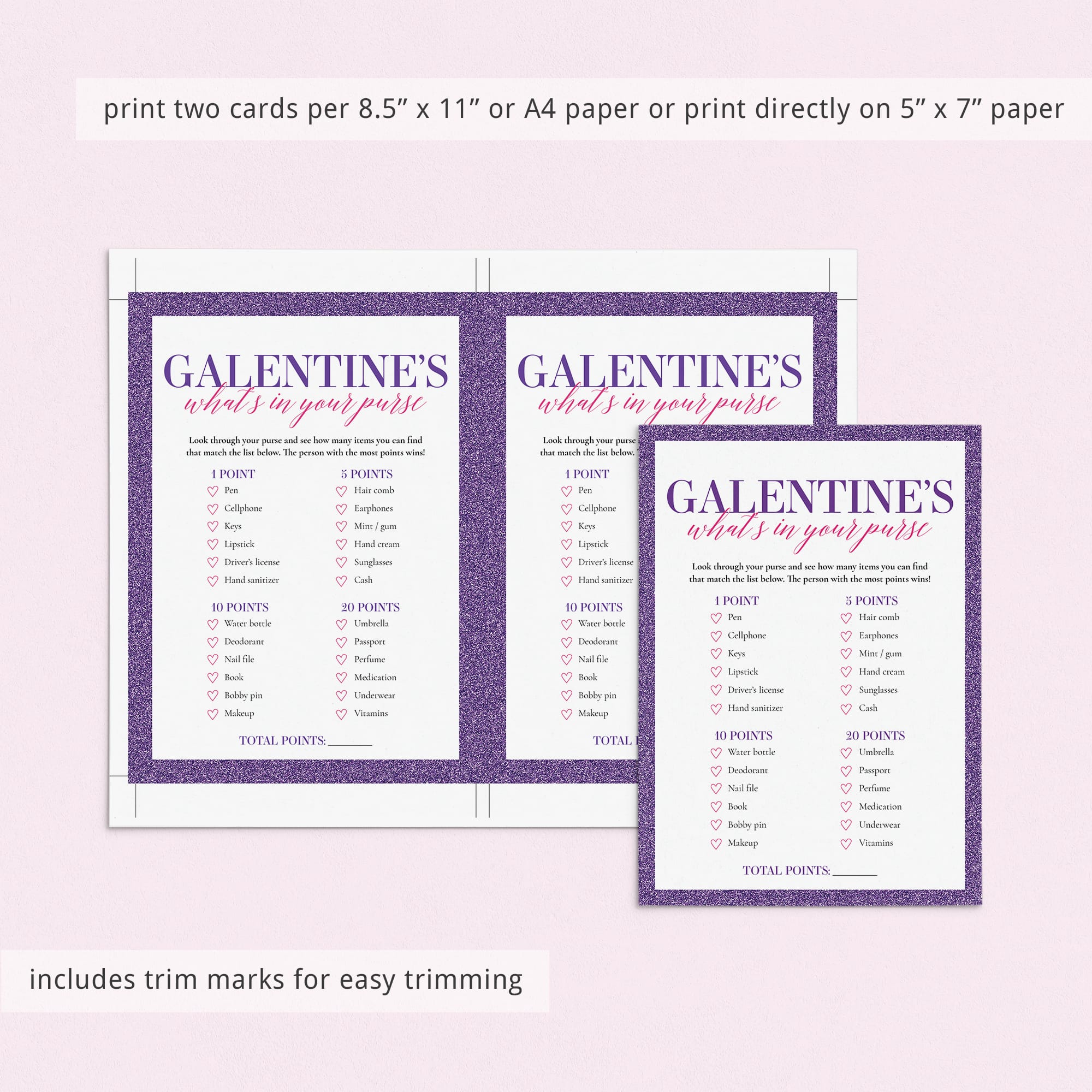This Galentines Day Purse game is an instant download. After purchase you will receive a download link immediately on screen. Also within minutes of your order and payment, an e-mail will be sent to you with a link for your download.