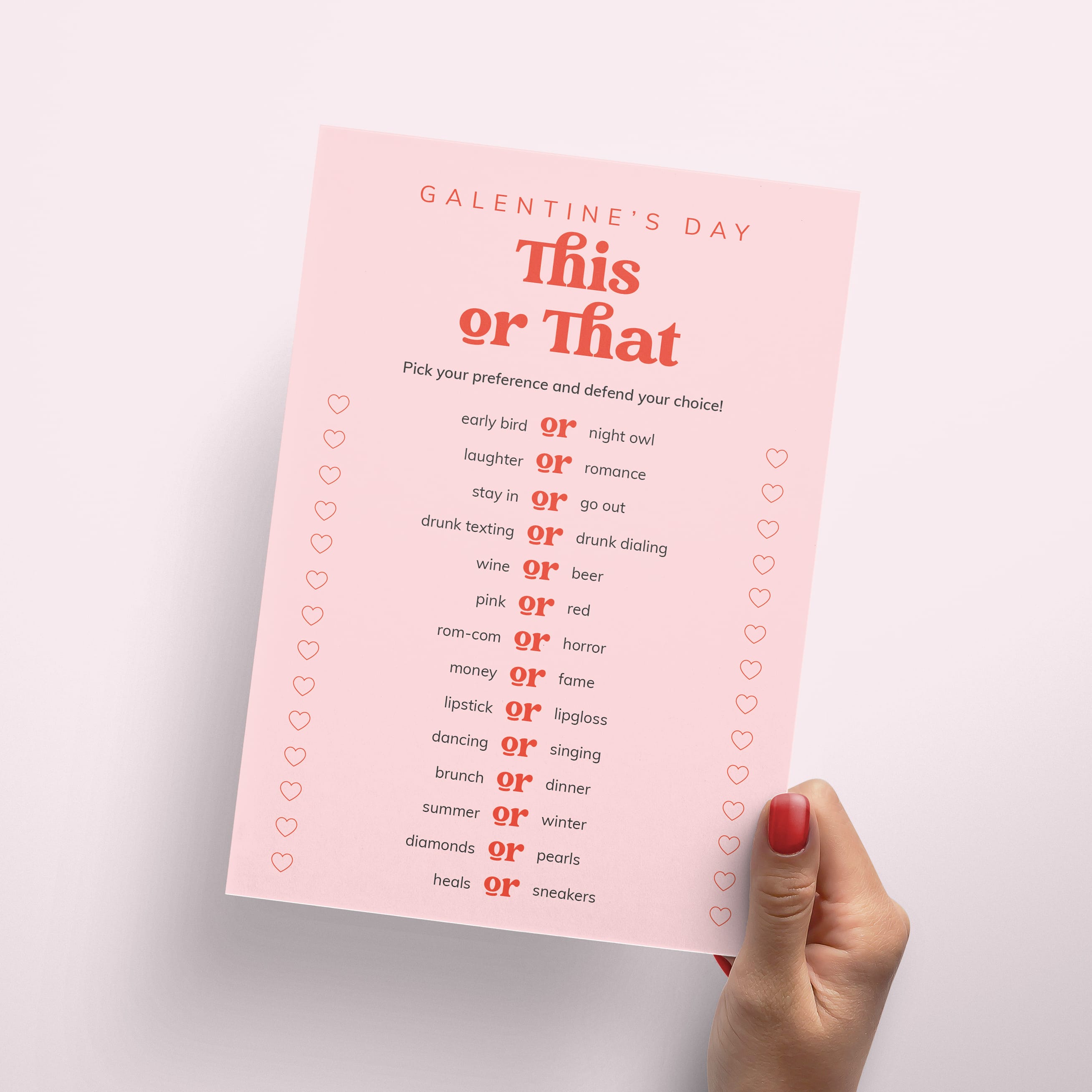 This stylish set of 8 popular games and activities is the perfect addition to any Galentine’s celebration. The bold red lettering adds a fun retro flair, making the games both exciting to play and beautiful to display