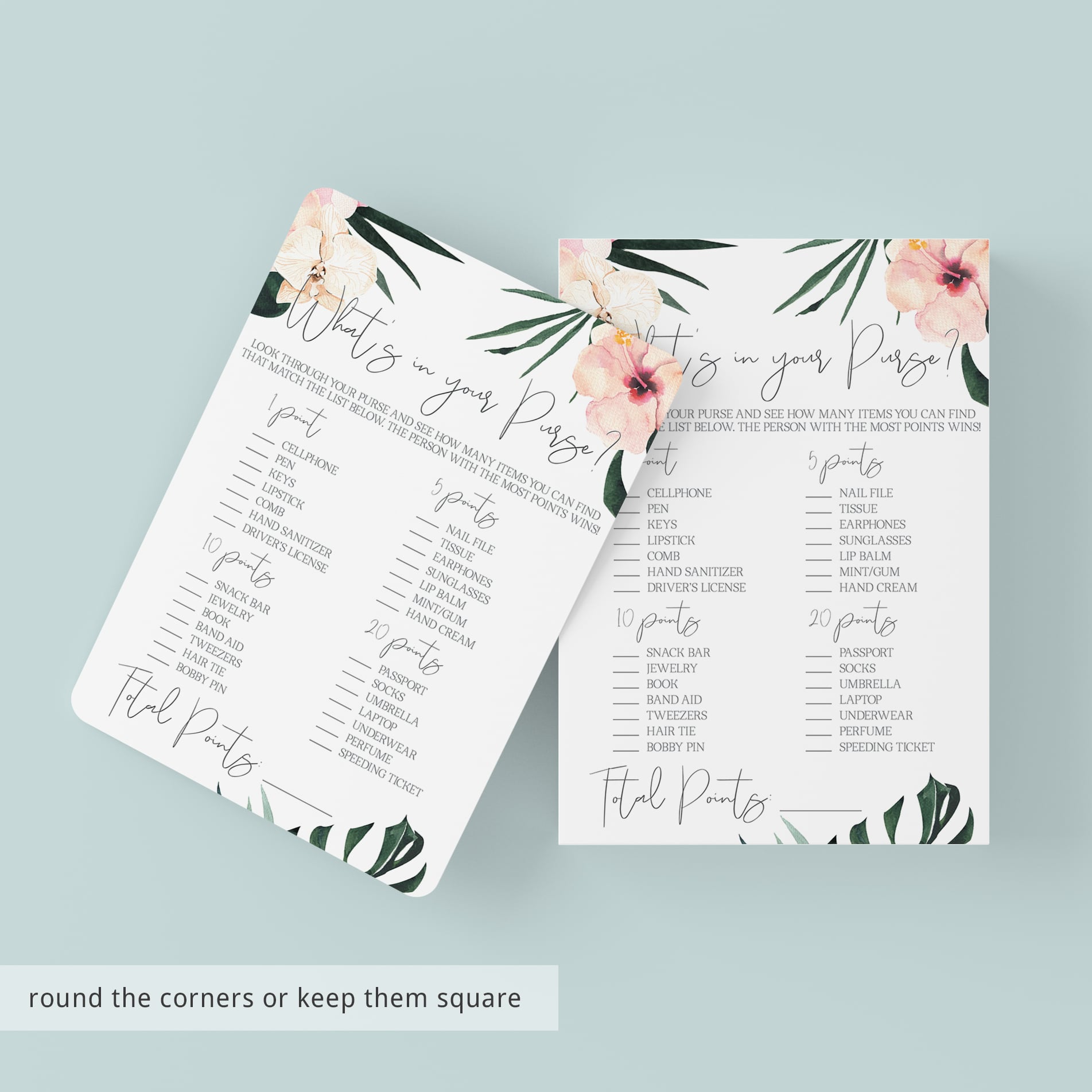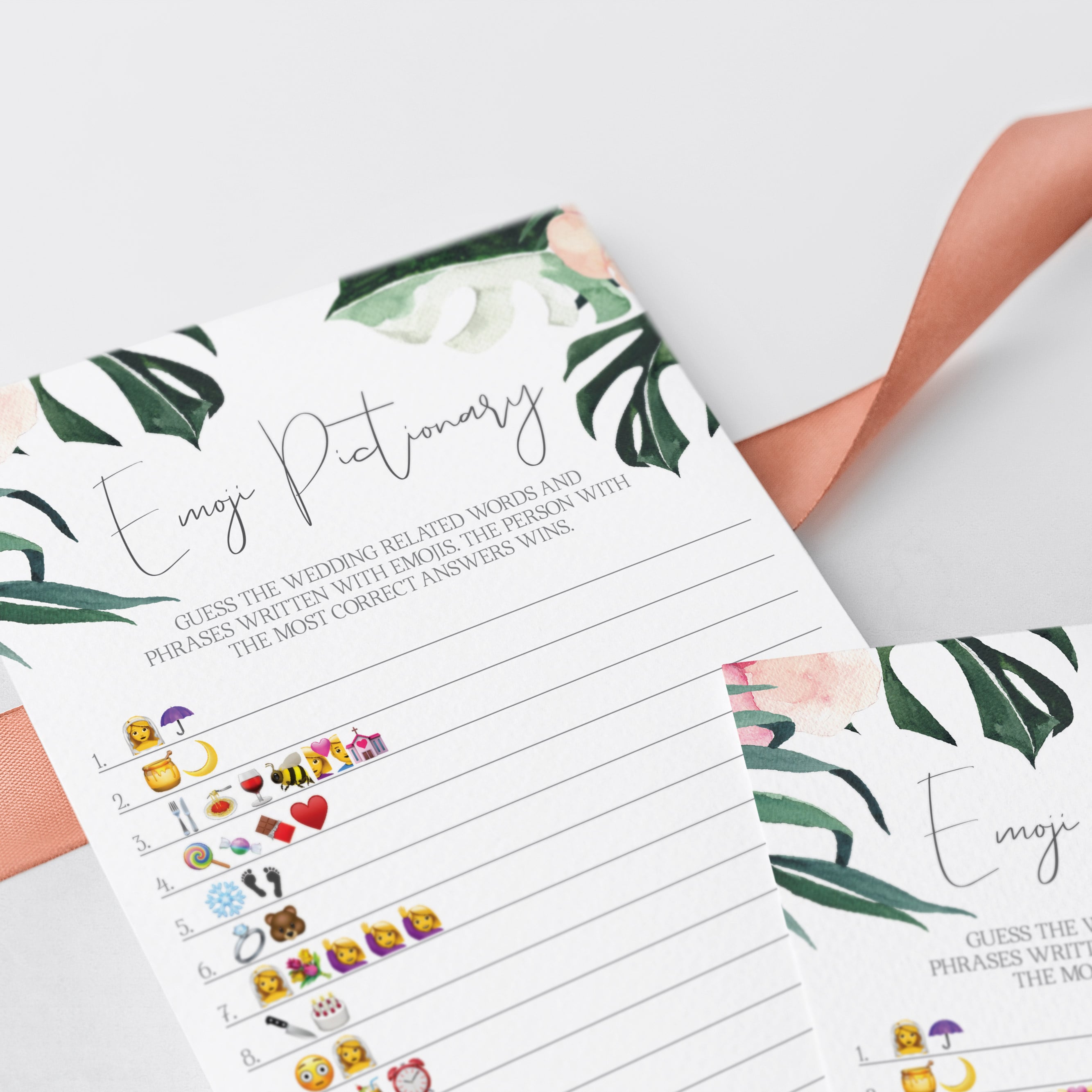 Are you hosting a summer bridal shower? Entertain your guests with this greenery and pink floral tropical bridal shower games bundle with 4 popular bridal shower games. The bundle includes everything you need to entertain your guests with a variety of activities.