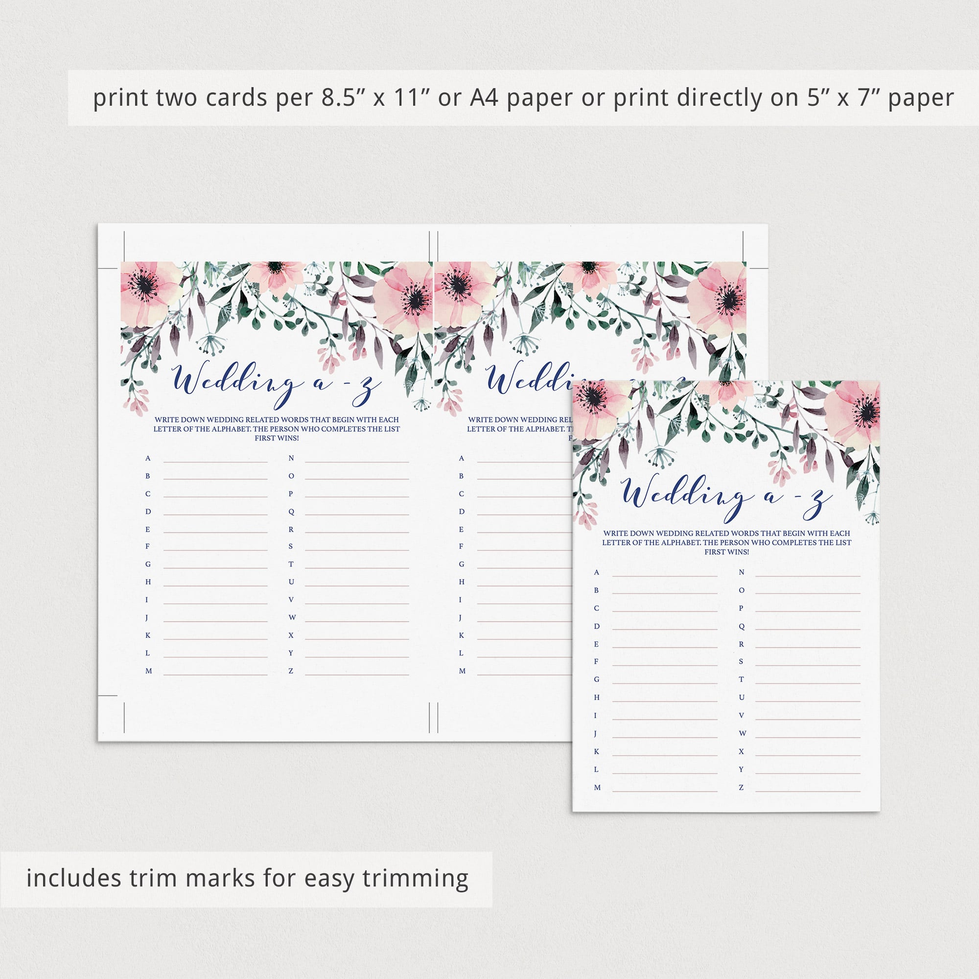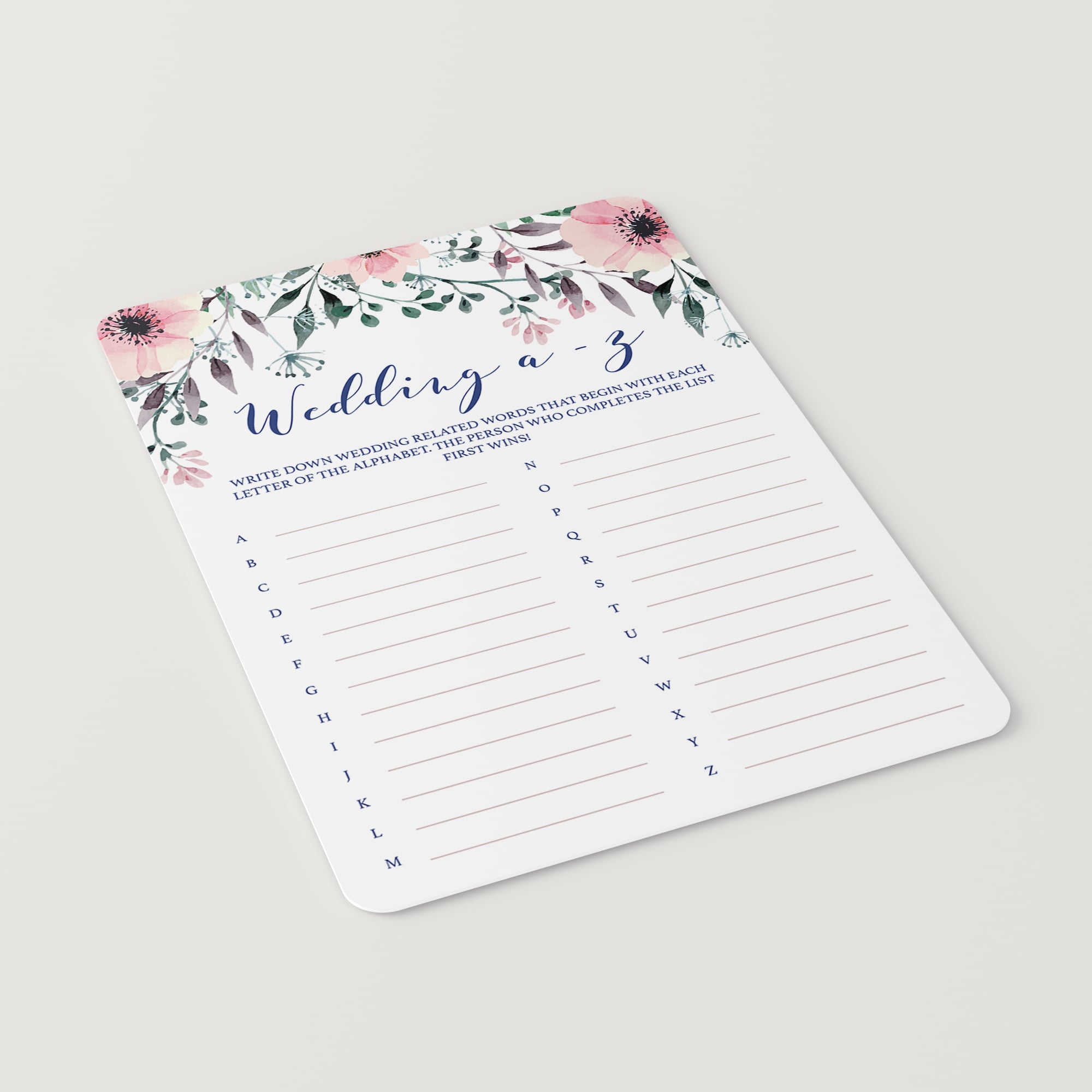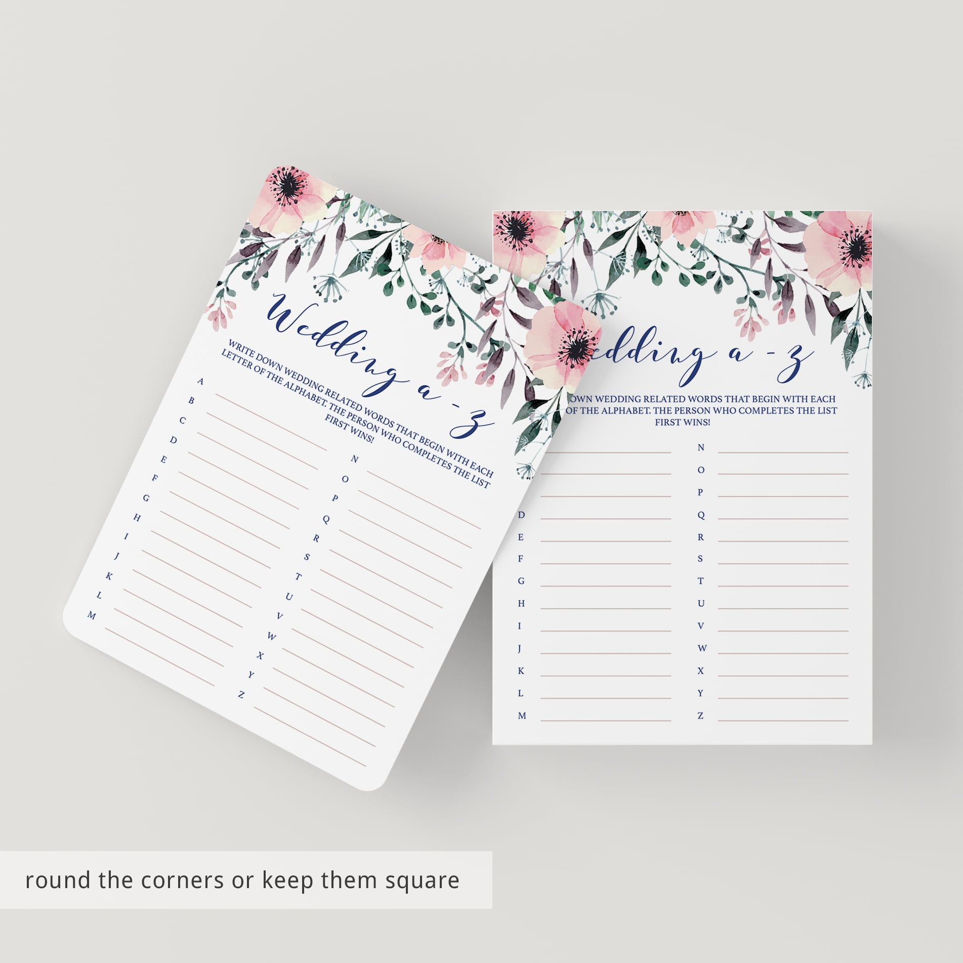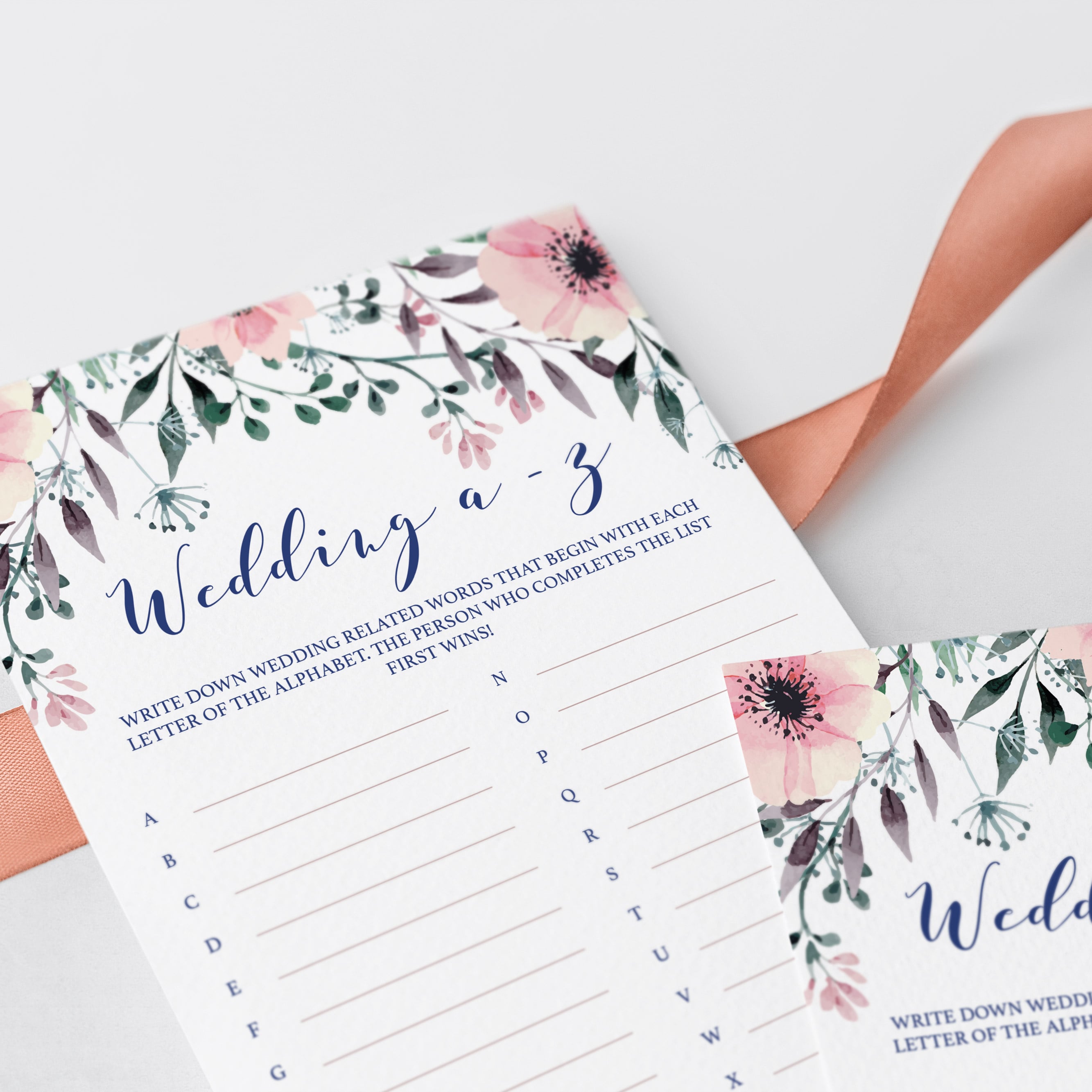 How many wedding related words do you know? Play this wedding alphabet game with these gorgeous floral game cards.