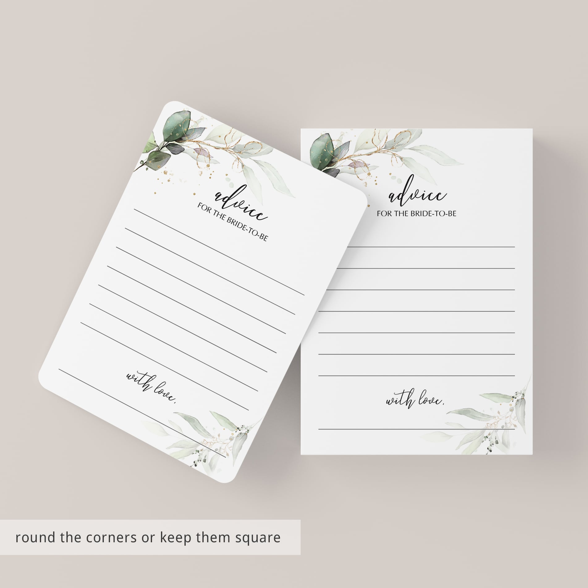 Create a meaningful keepsake for the bride-to-be with these gorgeous bridal shower advice cards with watercolor green foliage. It's the perfect addition to any botanical theme bridal shower or bachelorette party. Let every guest write down their advice for the new bride and collect the cards for the lucky soon-to-be-Mrs.