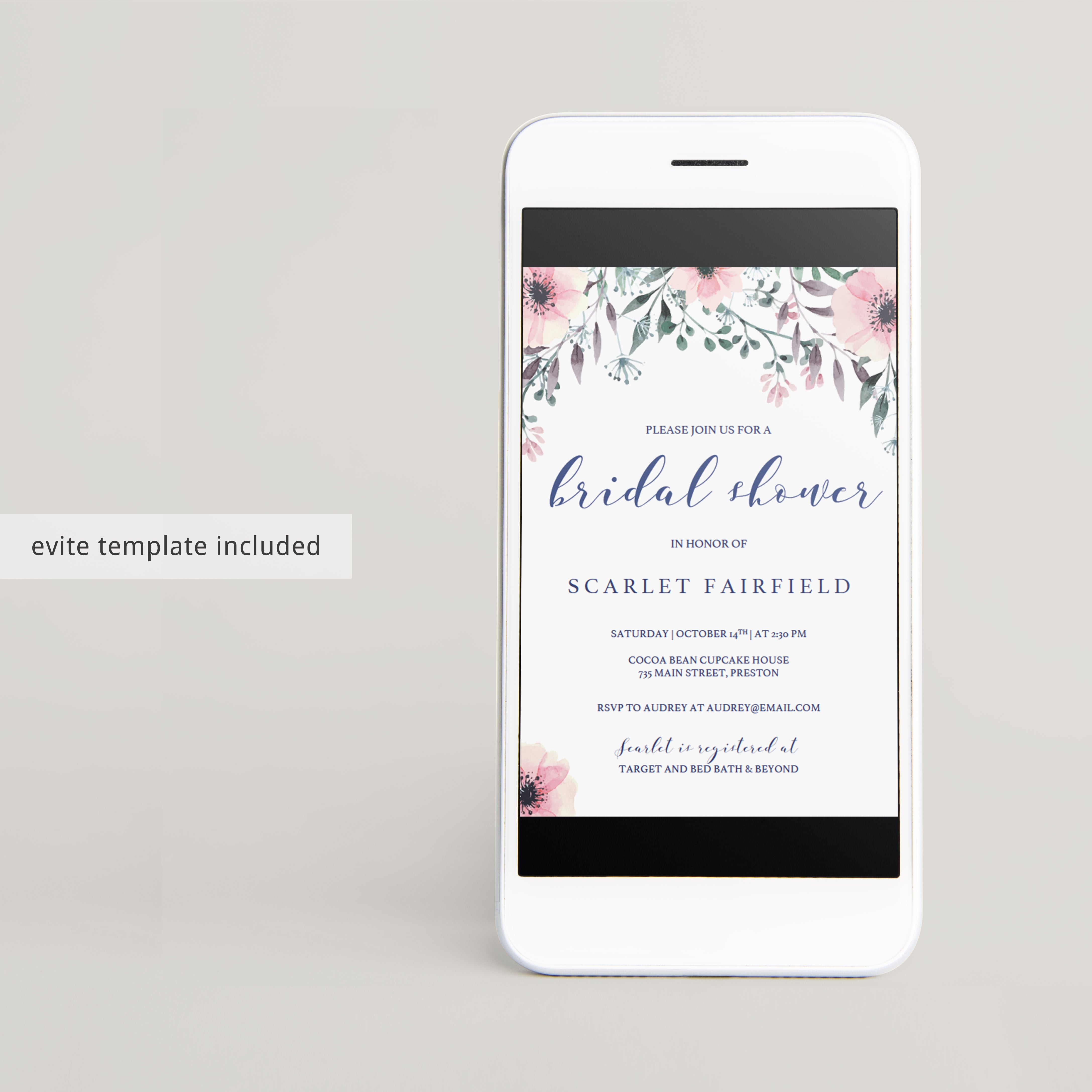 • 1 Editable PDF sized 5” x 7” to print or to use as evite