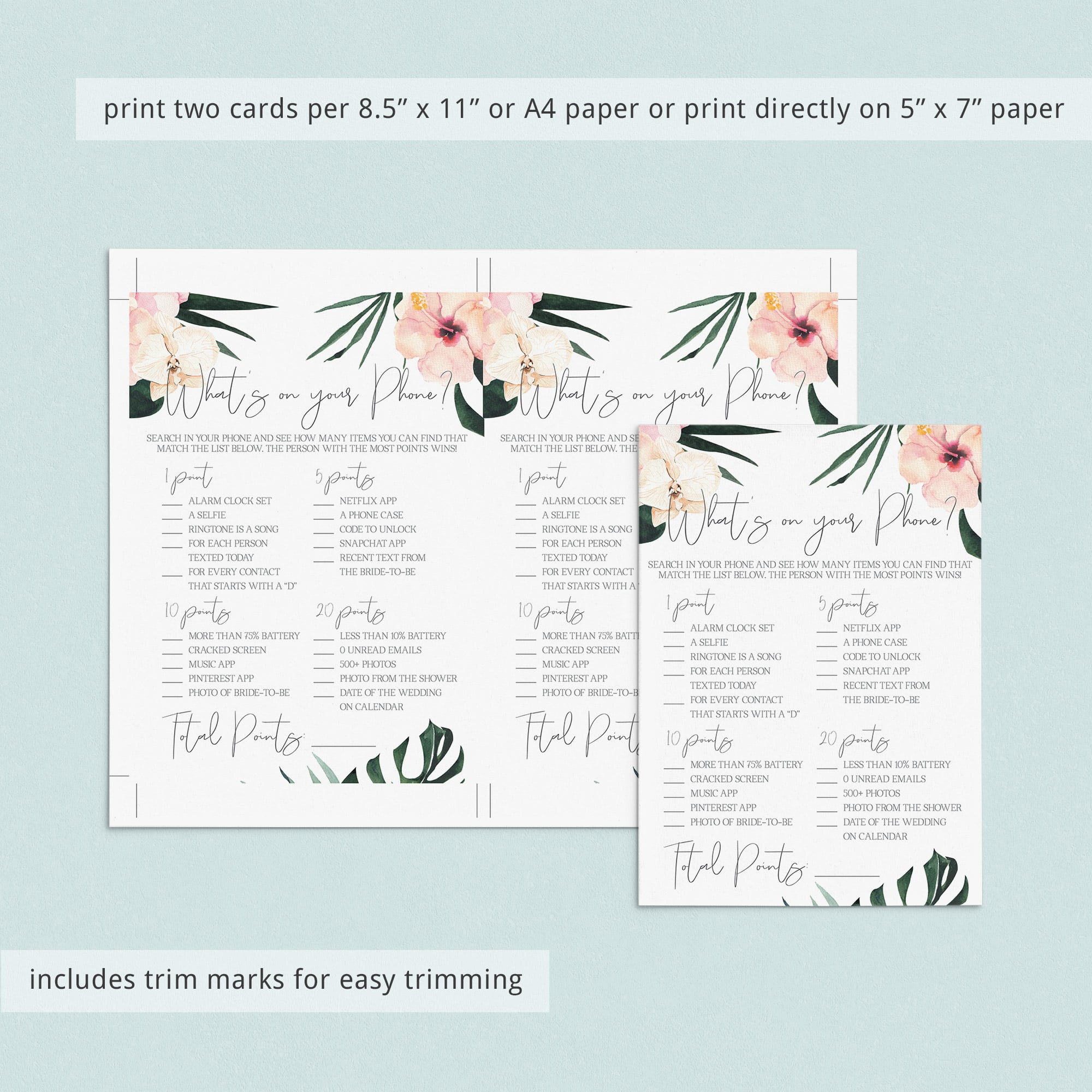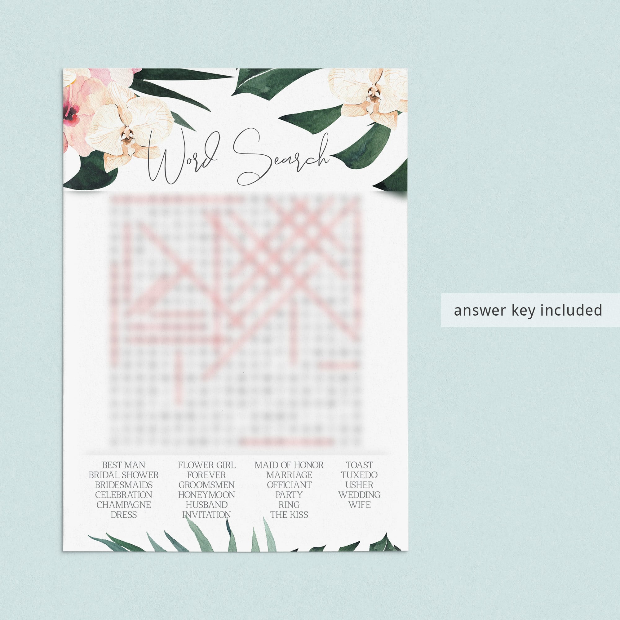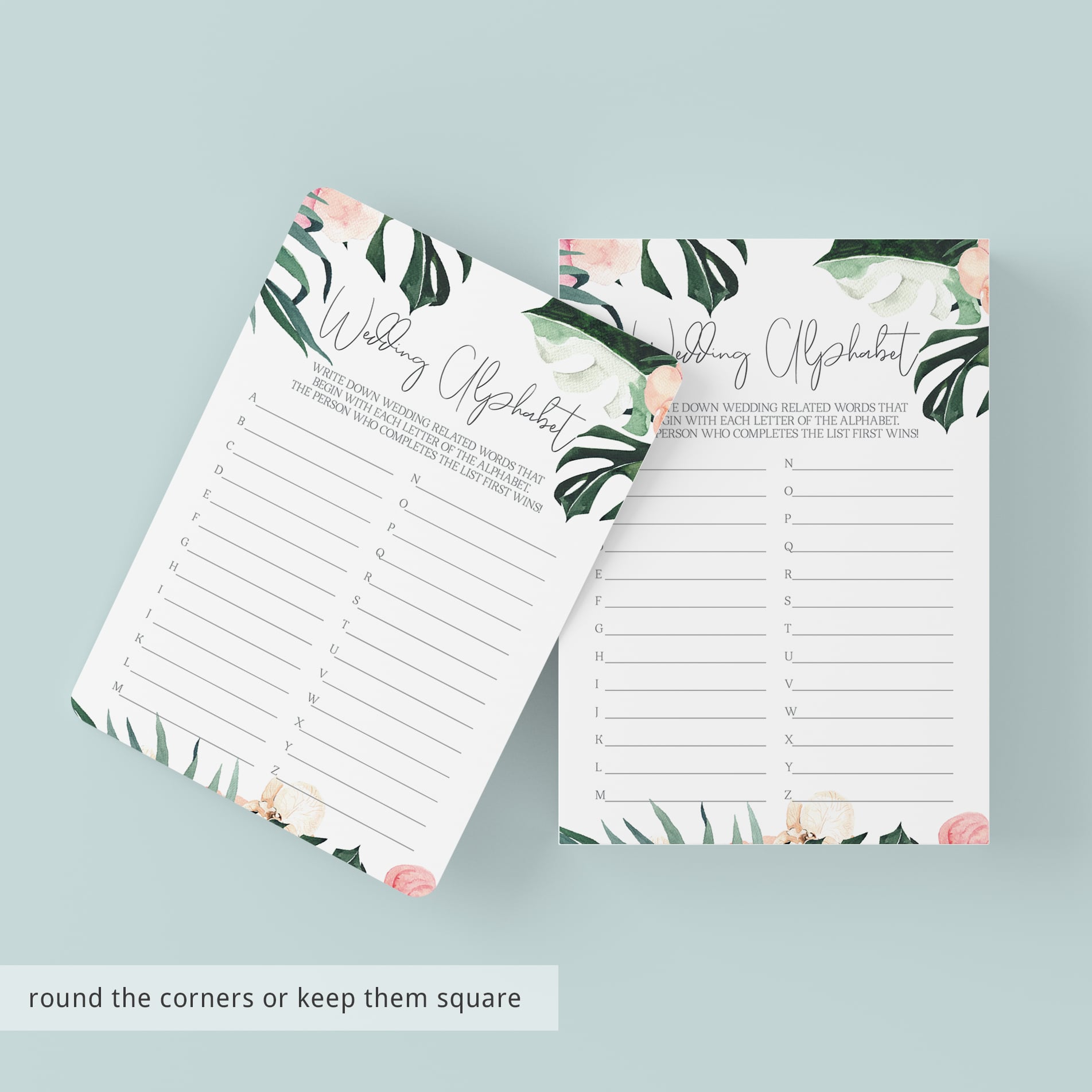 Are you hosting a tropical theme bridal shower? Entertain your guests with this gorgeous tropical bridal shower games pack with 4 popular games. With its watercolor floral arrangements and monstera leaves, this games pack is perfect for any summer bridal shower. The pack includes everything you need to entertain your guests with a variety of activities.