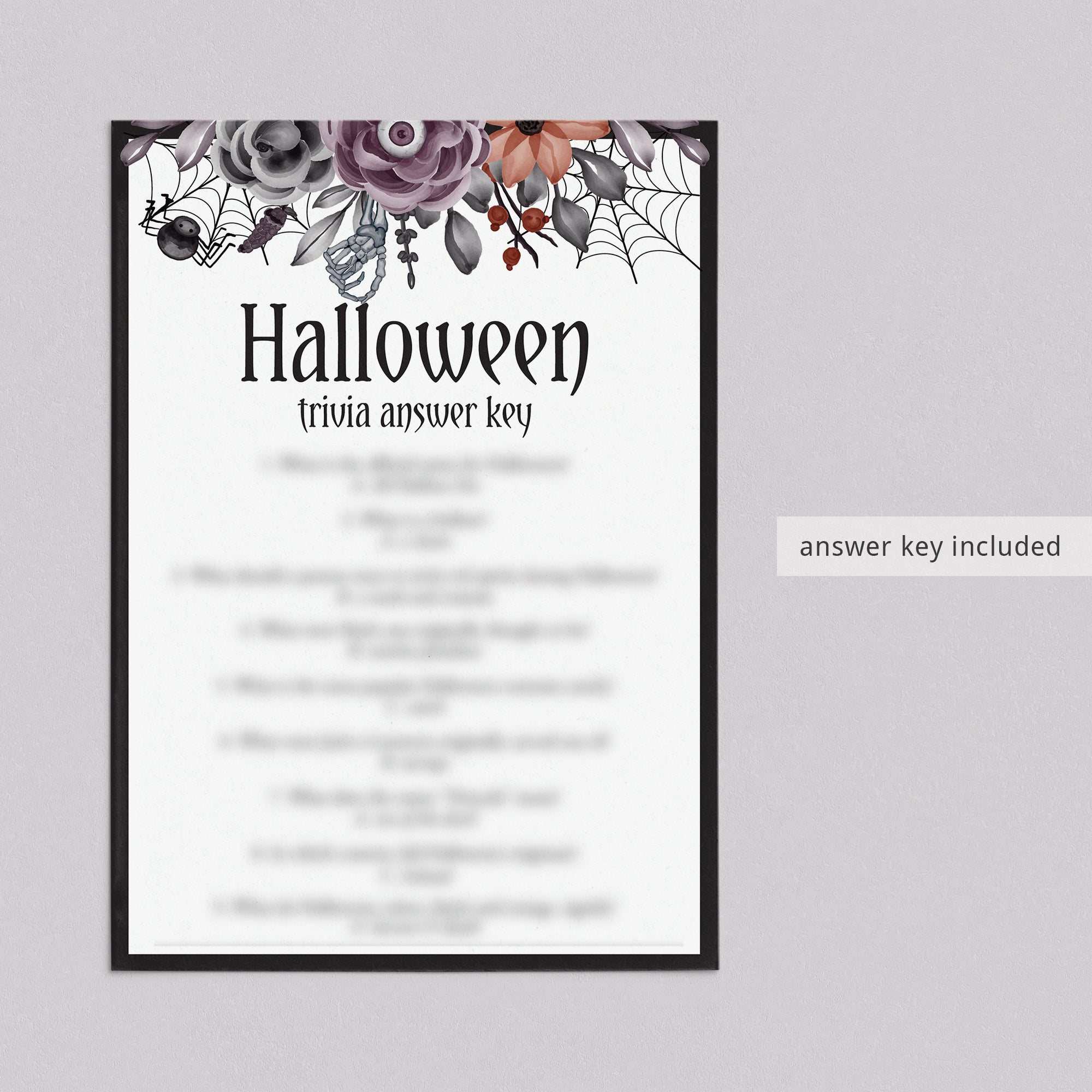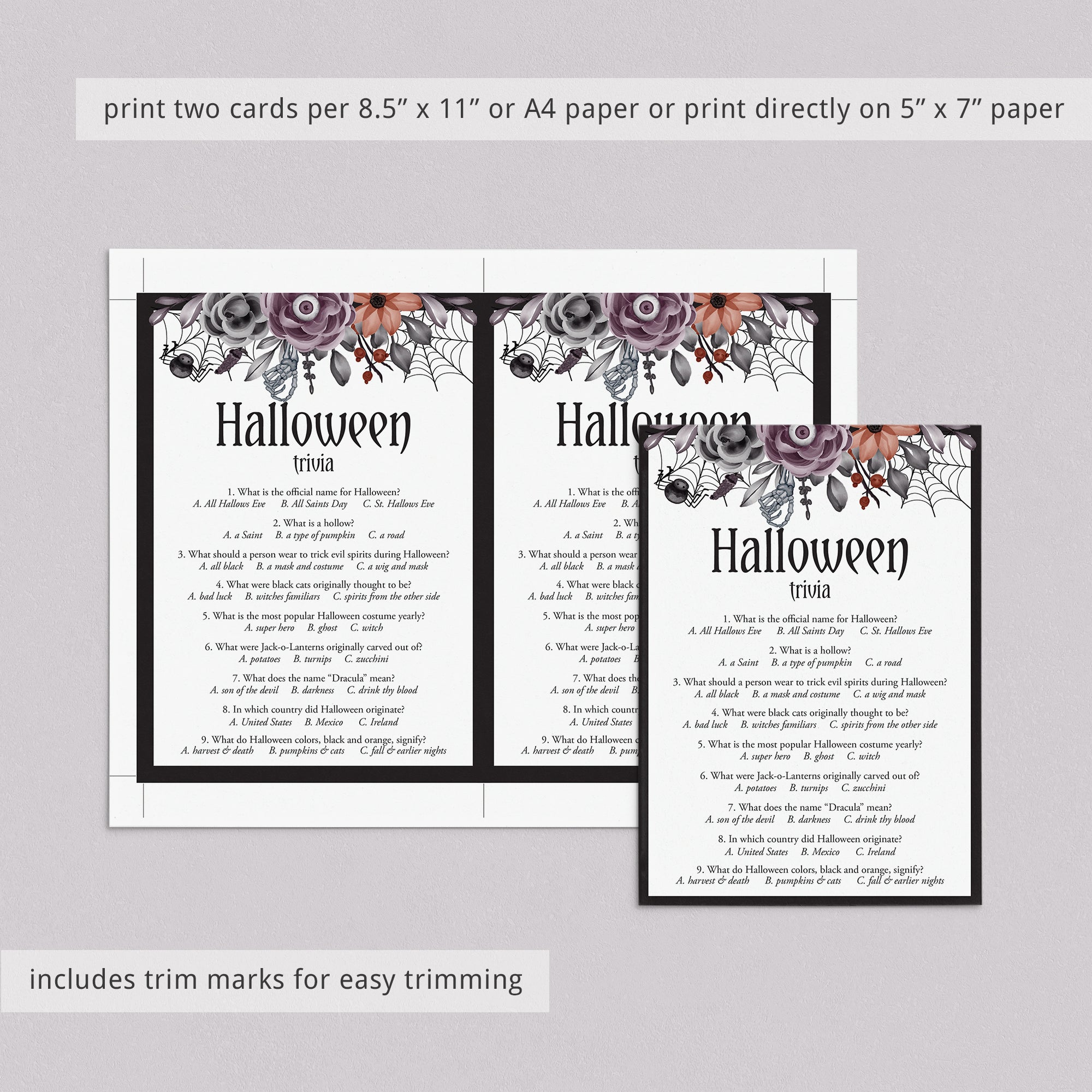 Are you hosting a Halloween Girl Night? Use this printable Halloween Trivia Quiz with creepy flowers to test your girls Halloween knowledge. What is the most popular Halloween costume? And what do the Halloween colors, orange and black, signify? Play this fun Halloween trivia game to find out!