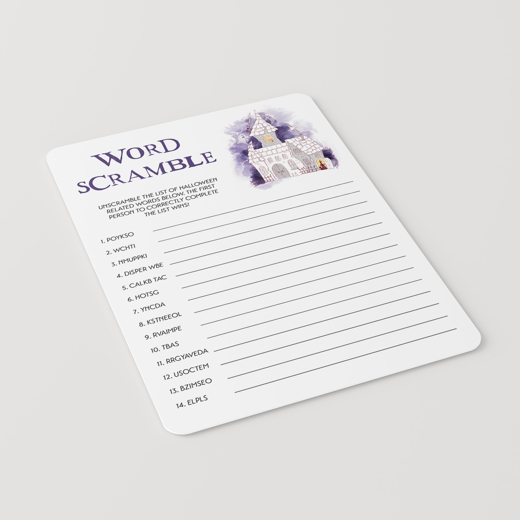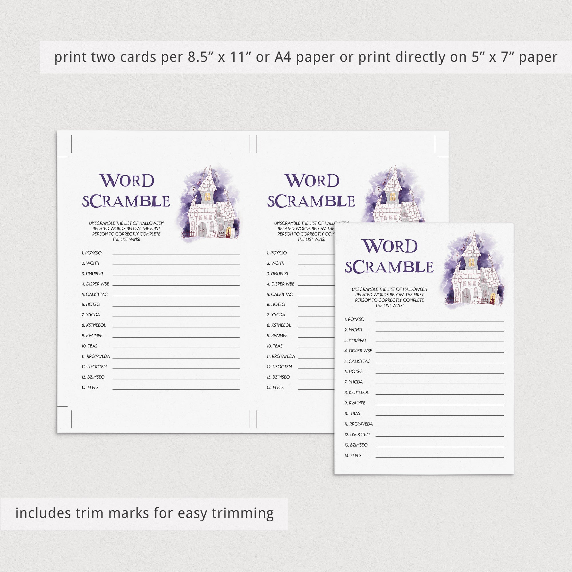 This Halloween Words Scramble game is an instant download. After purchase you will receive a download link immediately on screen. Also within minutes of your order and payment, an e-mail will be sent to you with a link for your download.