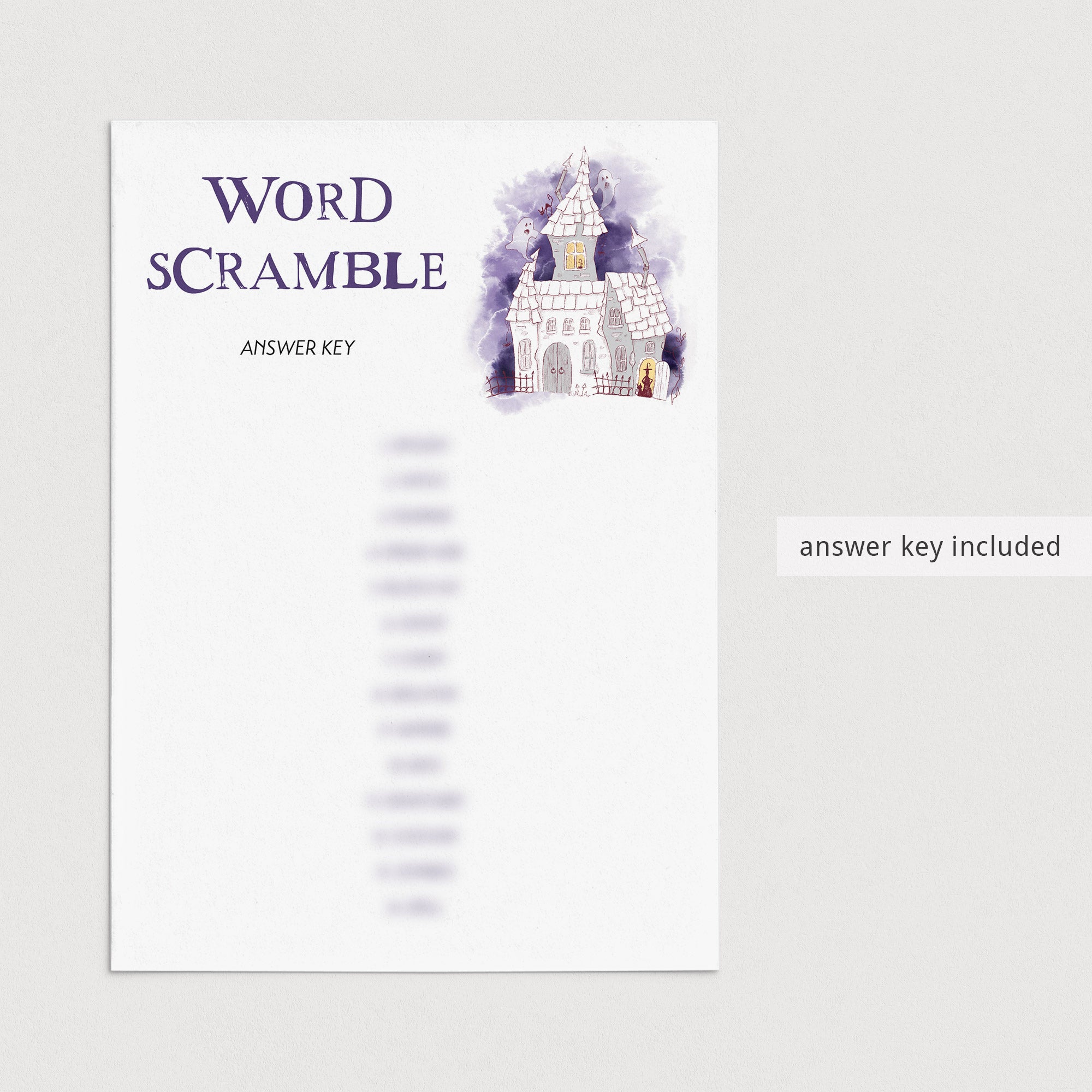 Just in case you have trouble figuring out the scrambled words, an answer key is included.
