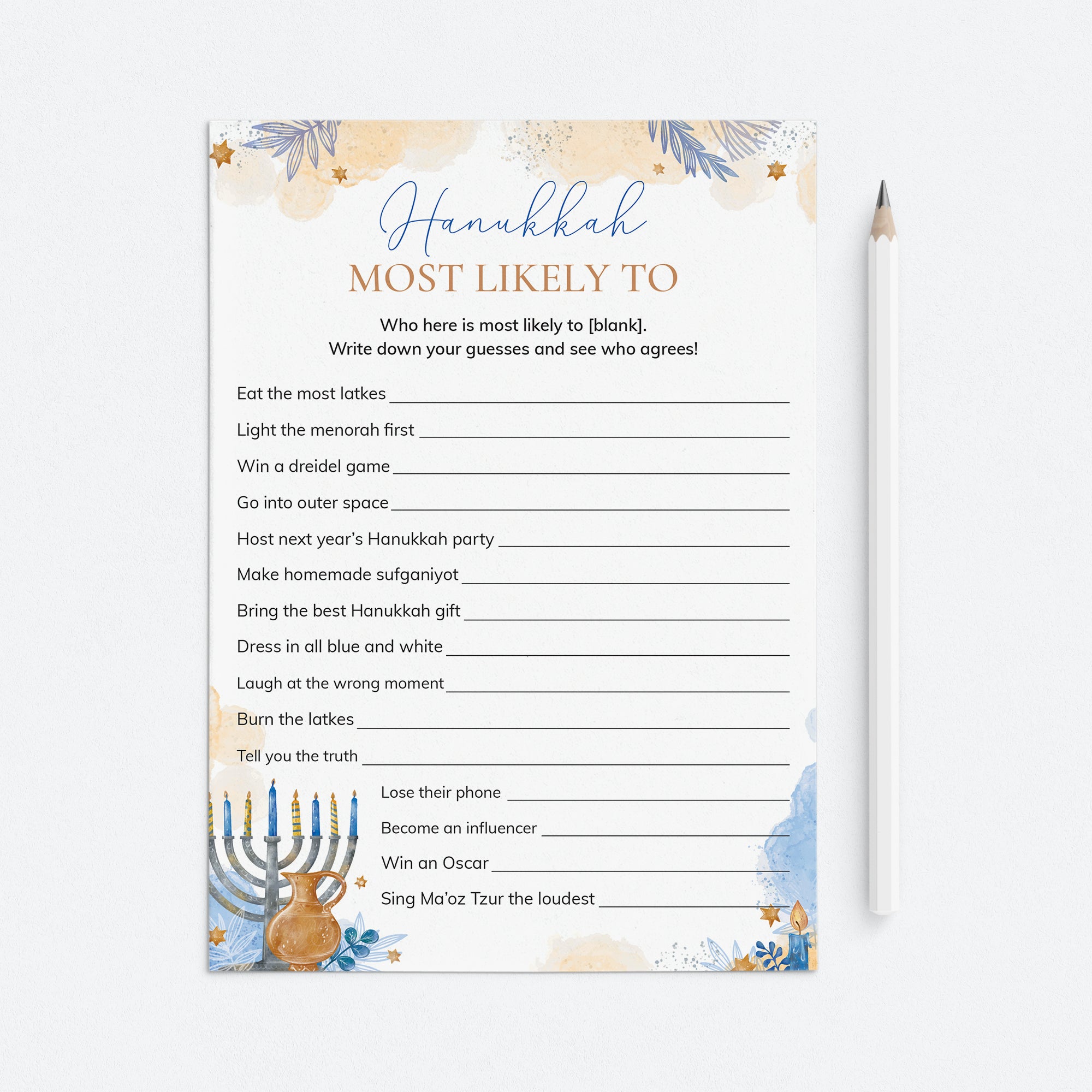 Funny Hanukkah Game for Groups Most Likely To Printable by LittleSizzle