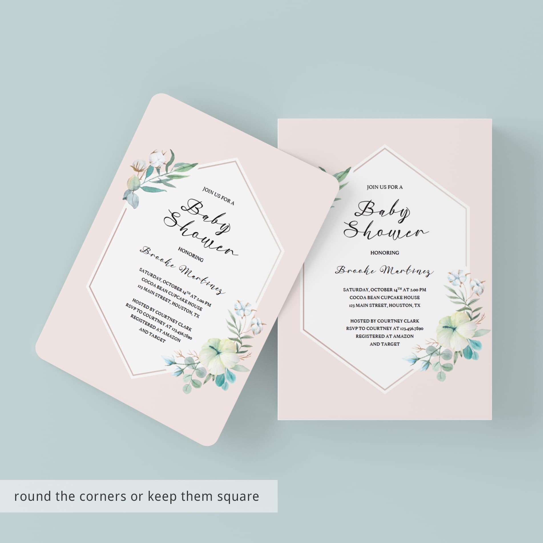 Treat the mommy-to-be on a shower to remember with this unique blush floral baby shower invitation!