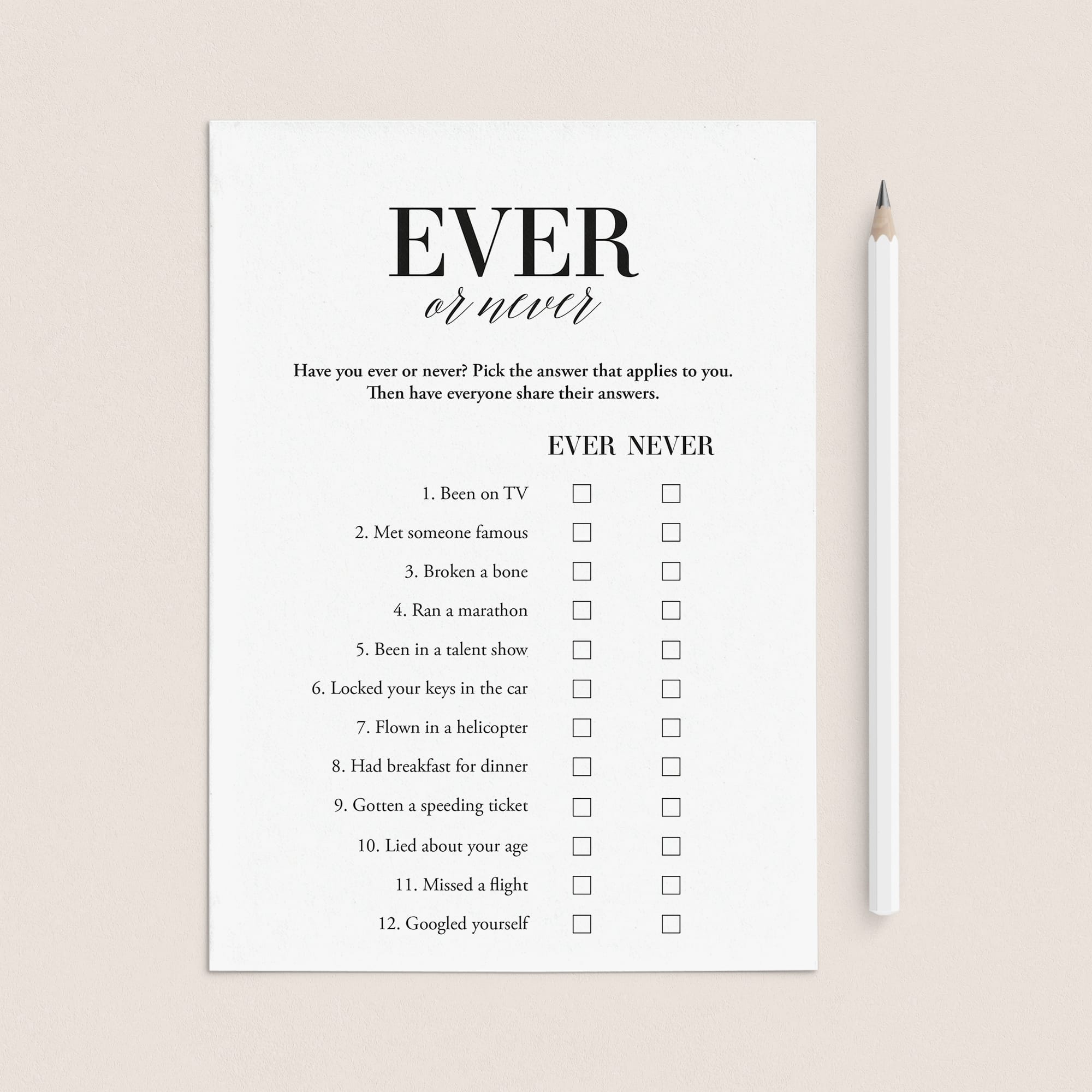 Print the games right from your computer in a matter of minutes or have the cards printed at your favorite print shop. The games have been designed in black and white. You can print on kraft paper to create a rustic look or print on colored card stock to match your party color palette. We recommend printing on a nice heavy card stock for highest quality feel.