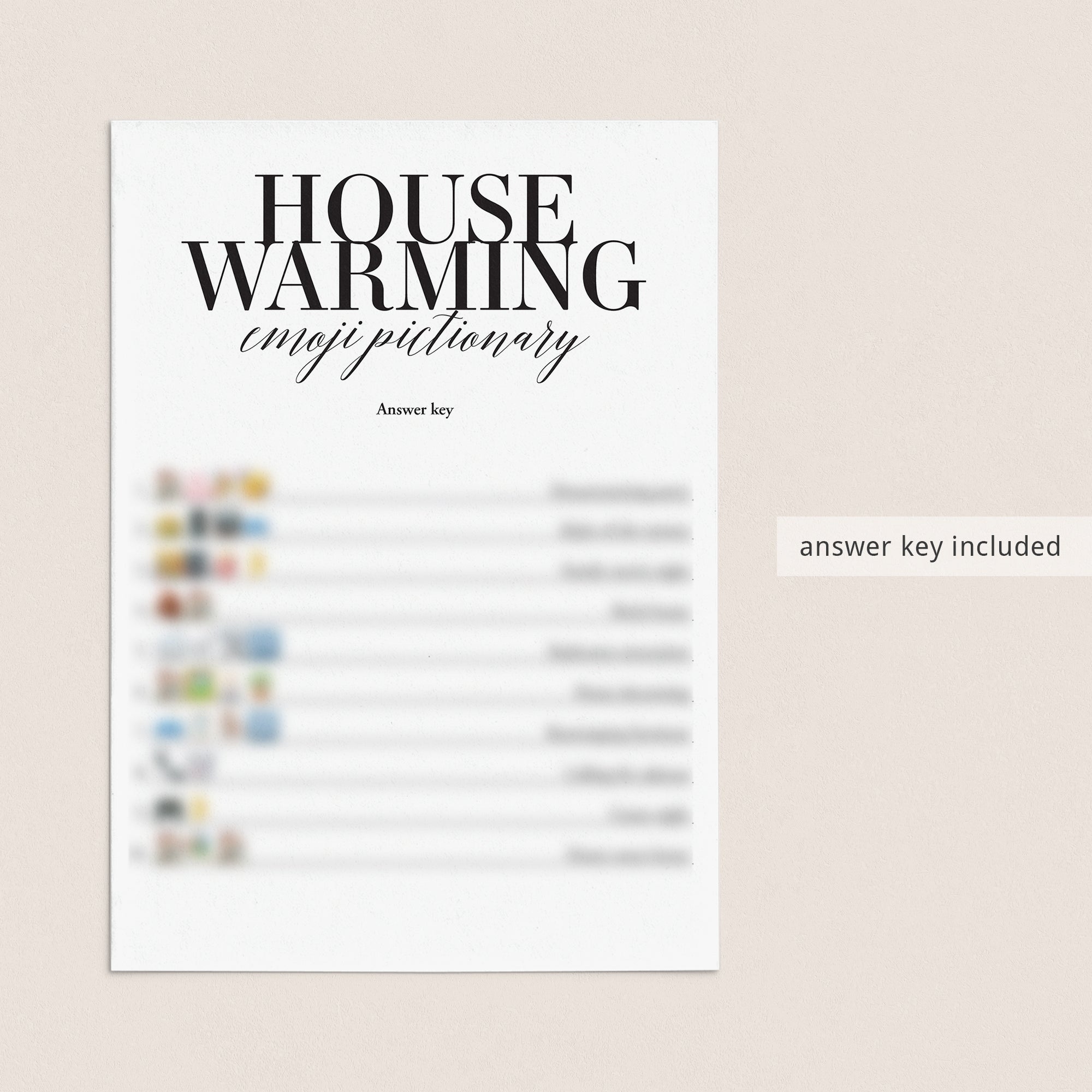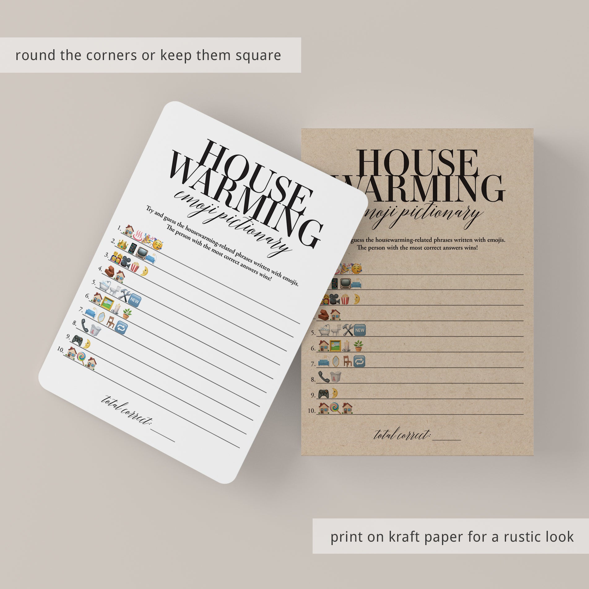 The game is very easy to play: guess the names of the housewarming-related phrases described using emojis we all know. The person with the most correct answers wins. An answer key is included.